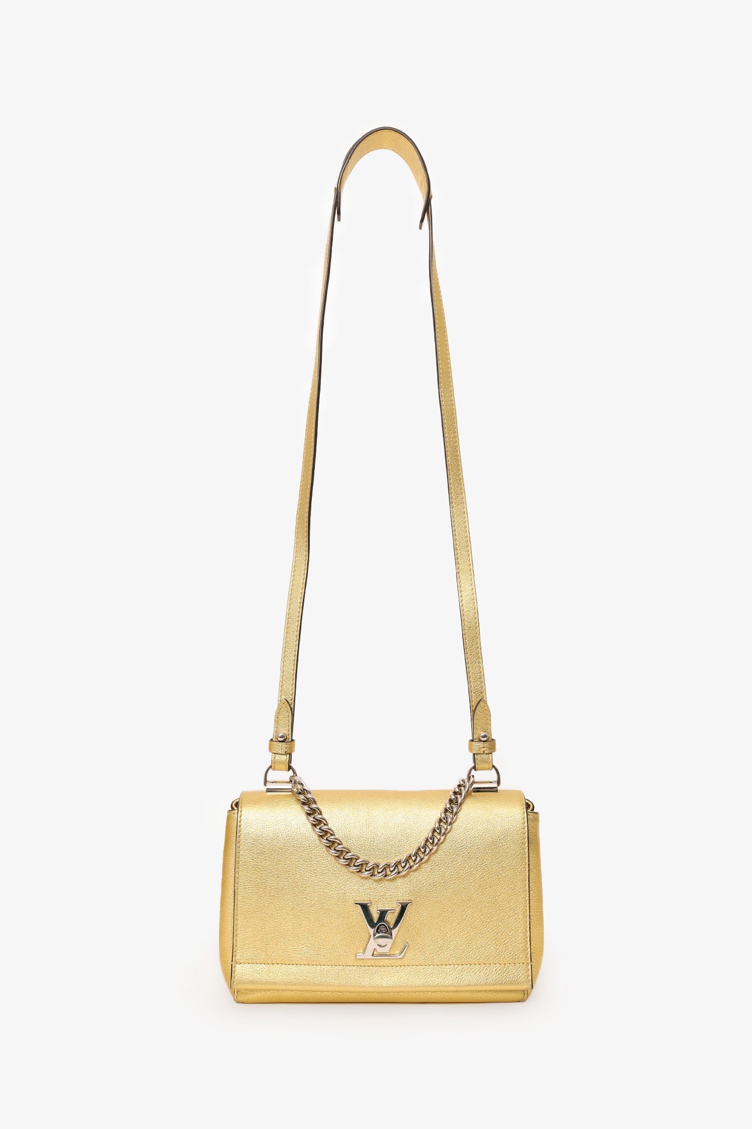 Louis Vuitton 2017 Gold Metallic Taurillon Leather 'LockMe' BB Chain Bag with Strap
