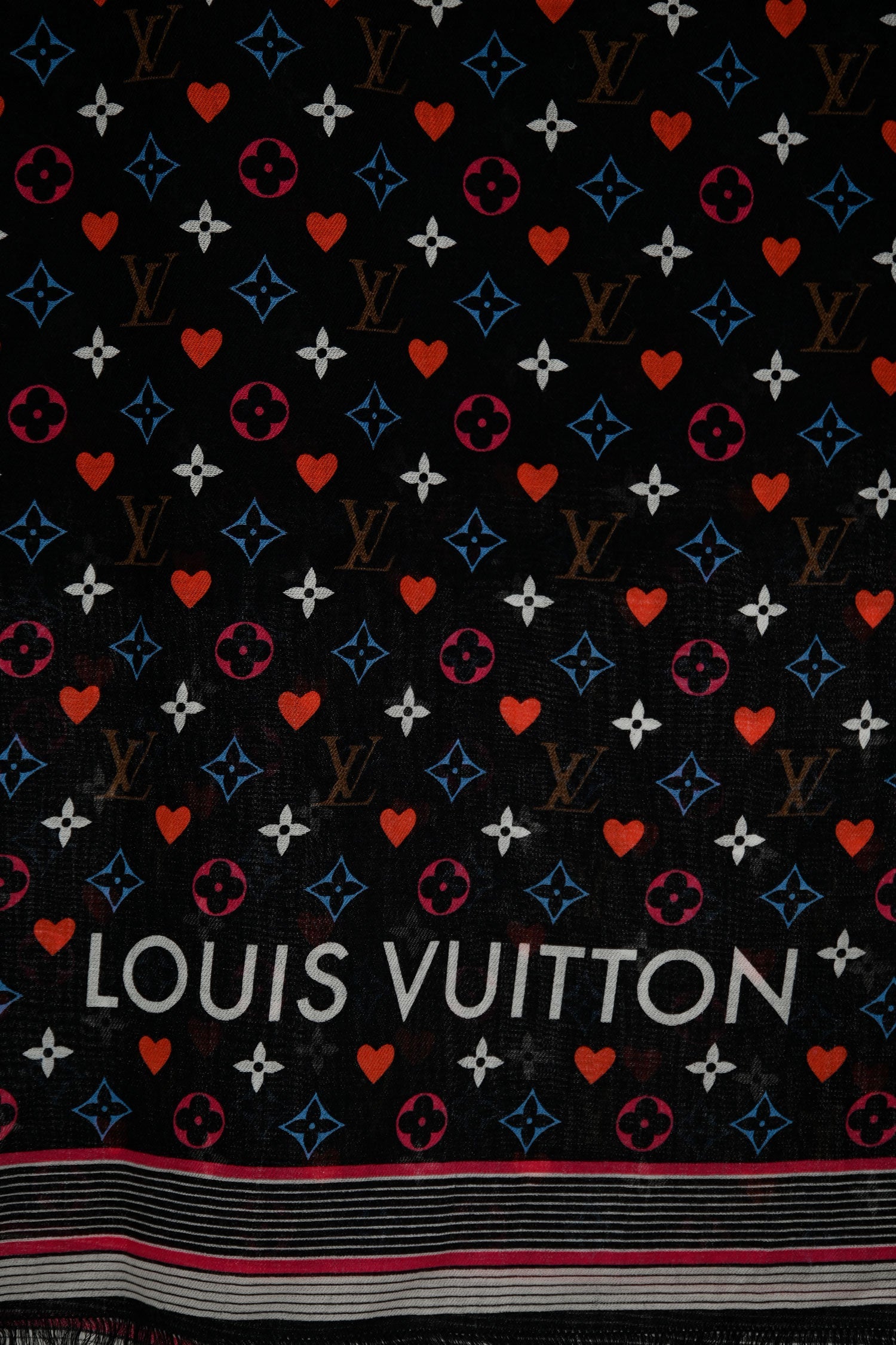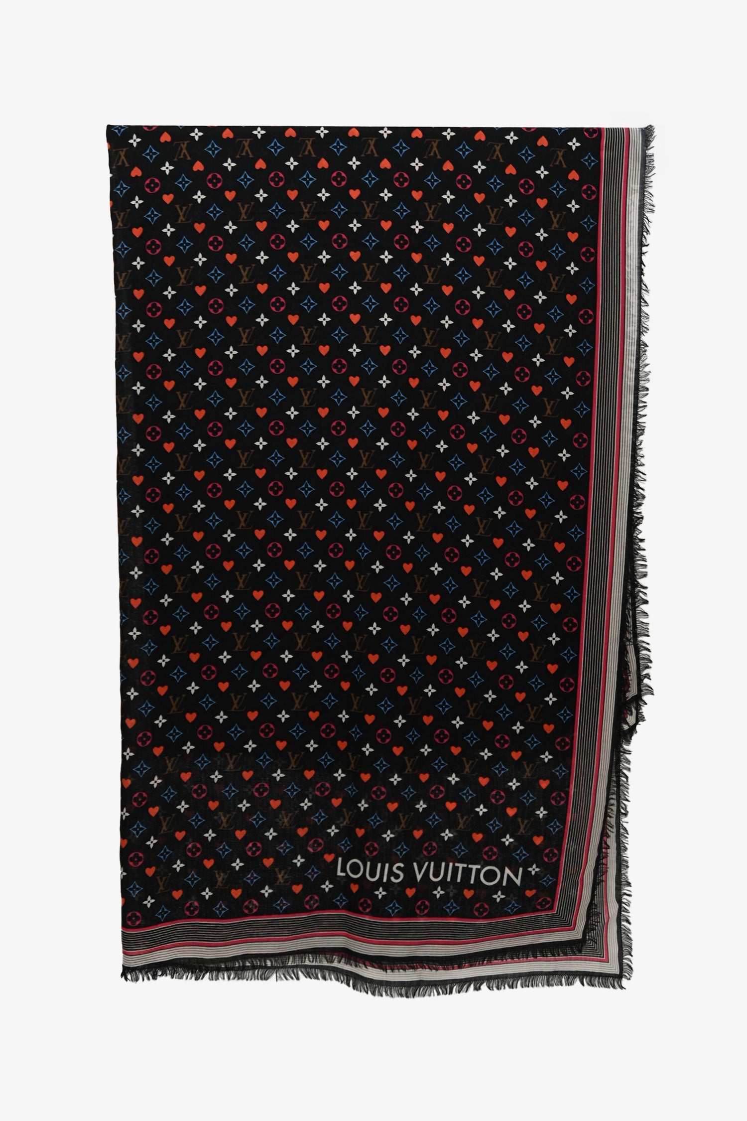 Louis Vuitton 2020 Black Wool 'Game On Collection' Shawl. Tonal stitching.