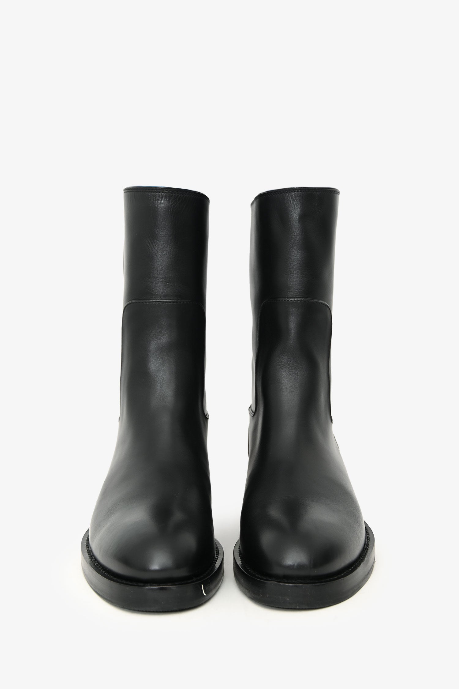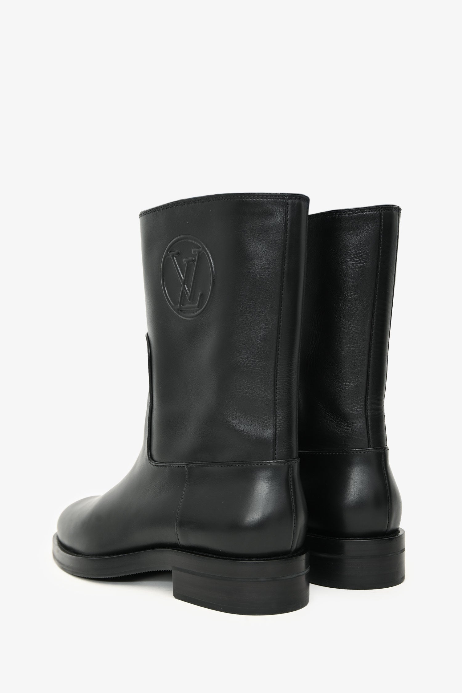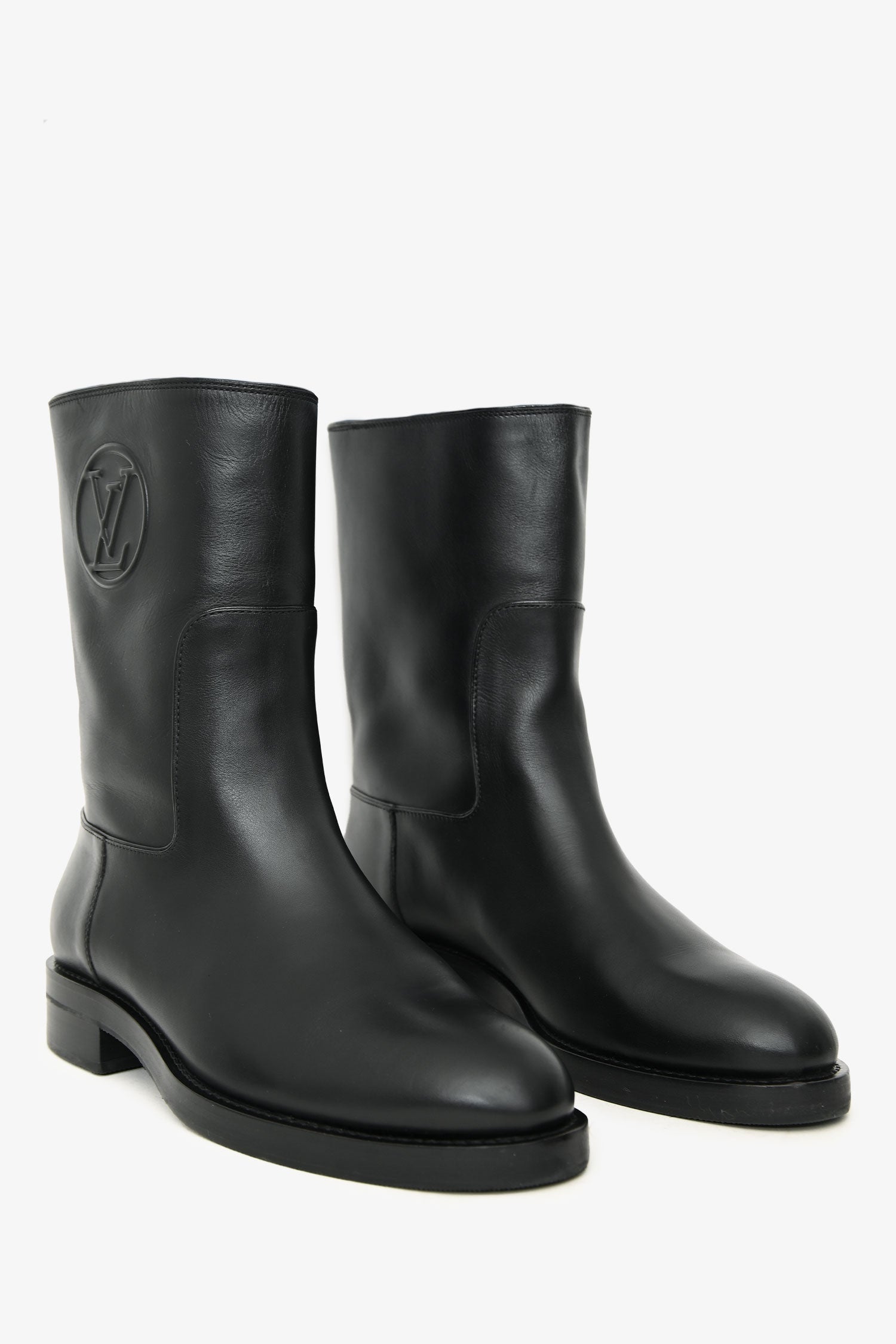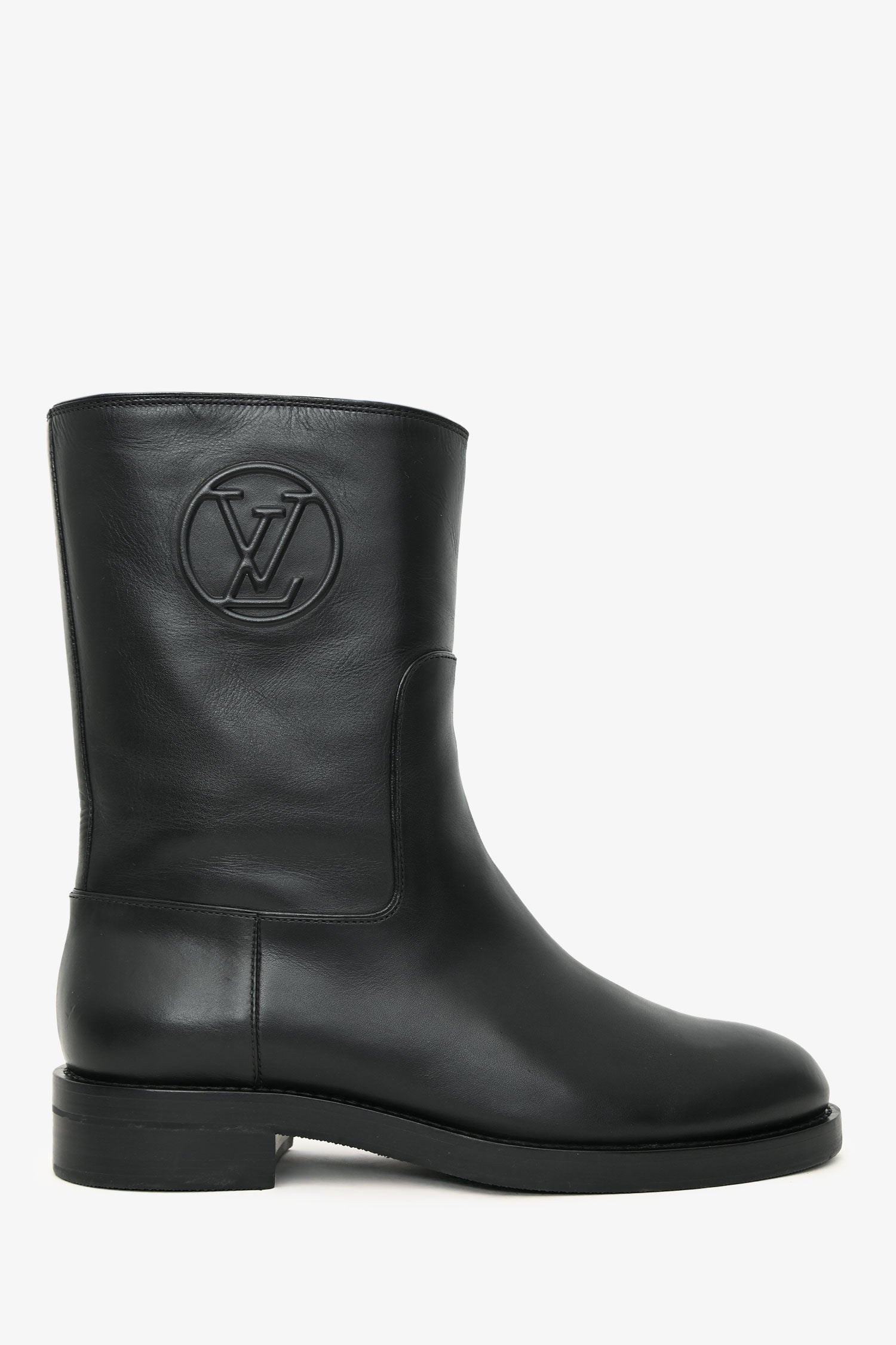Louis Vuitton Black Leather Ankle Boots. Pull-on. Leather lined. Tonal stitching.
