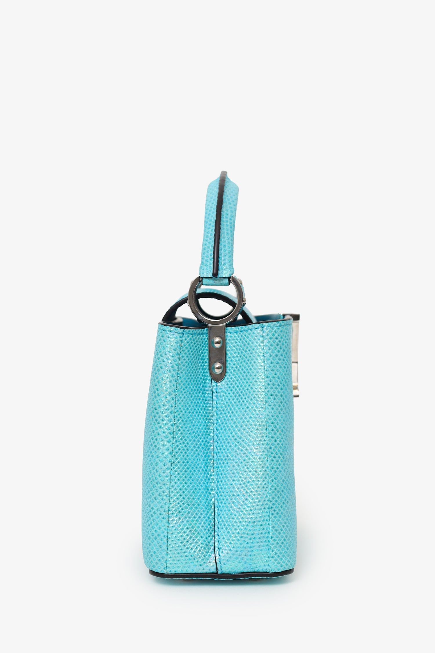 Louis Vuitton Blue Metallic Python Leather Mini Capucines with Strap