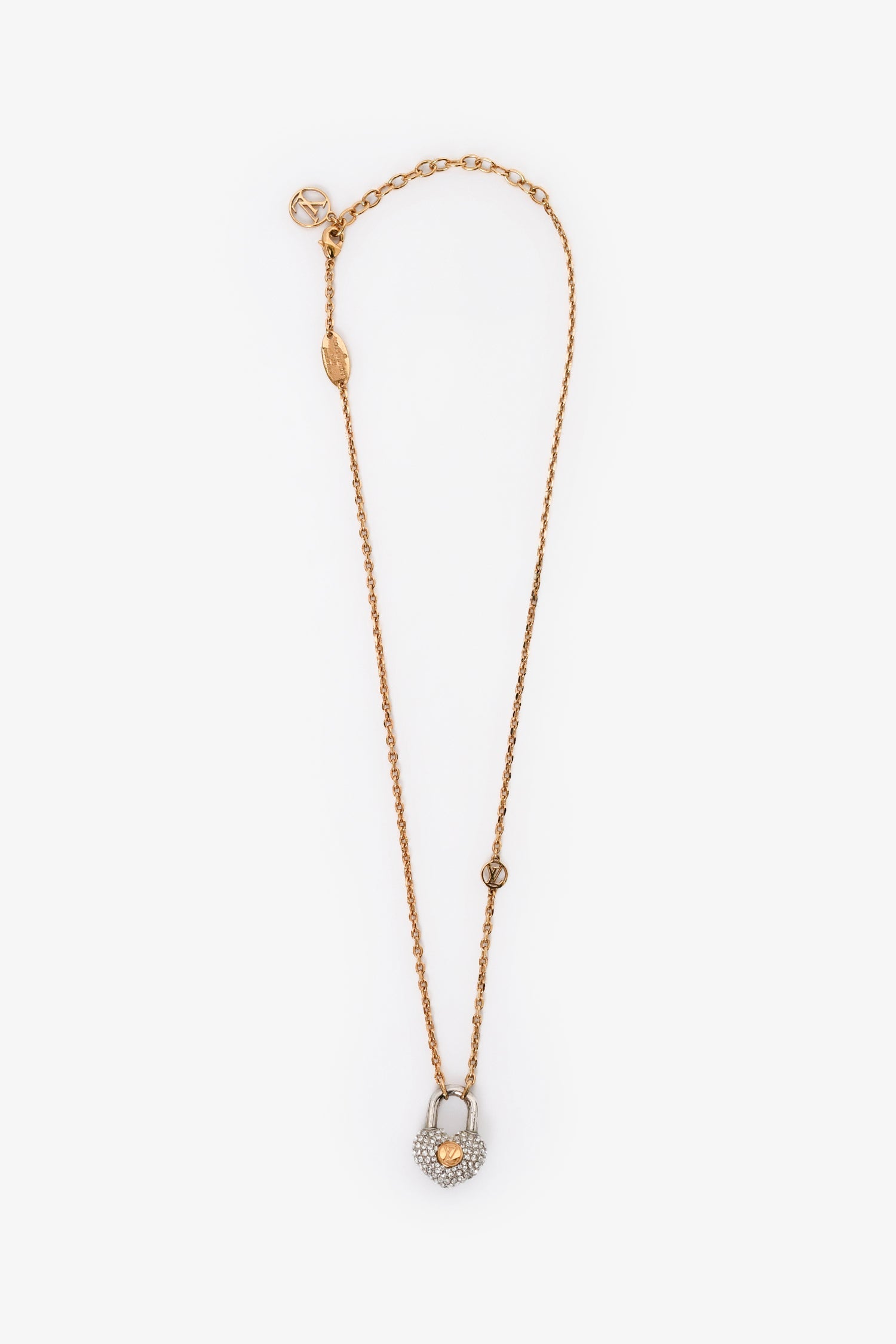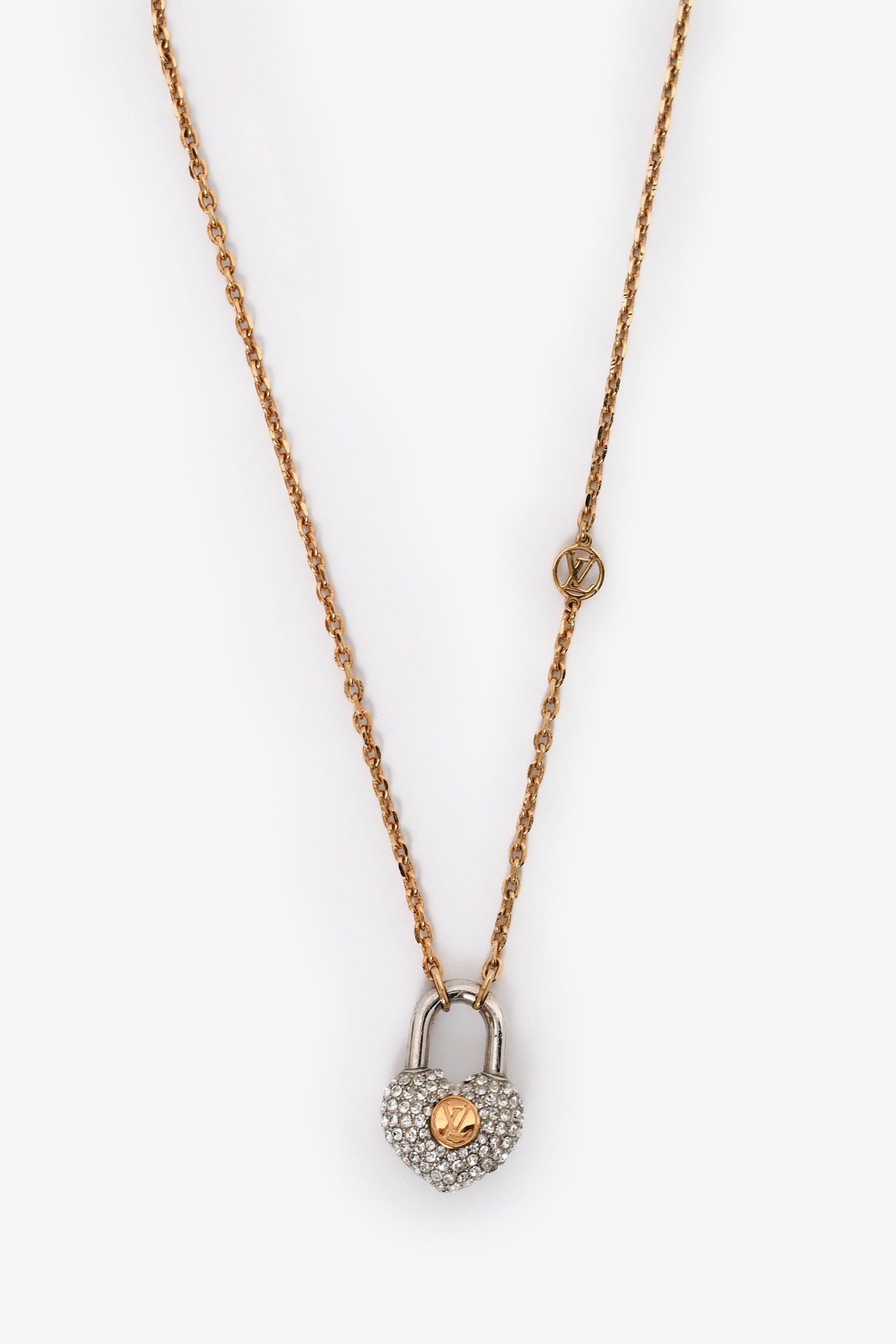 Louis Vuitton Gold/ Silver Toned Heart Lock Necklace. Lobster clasp closure.