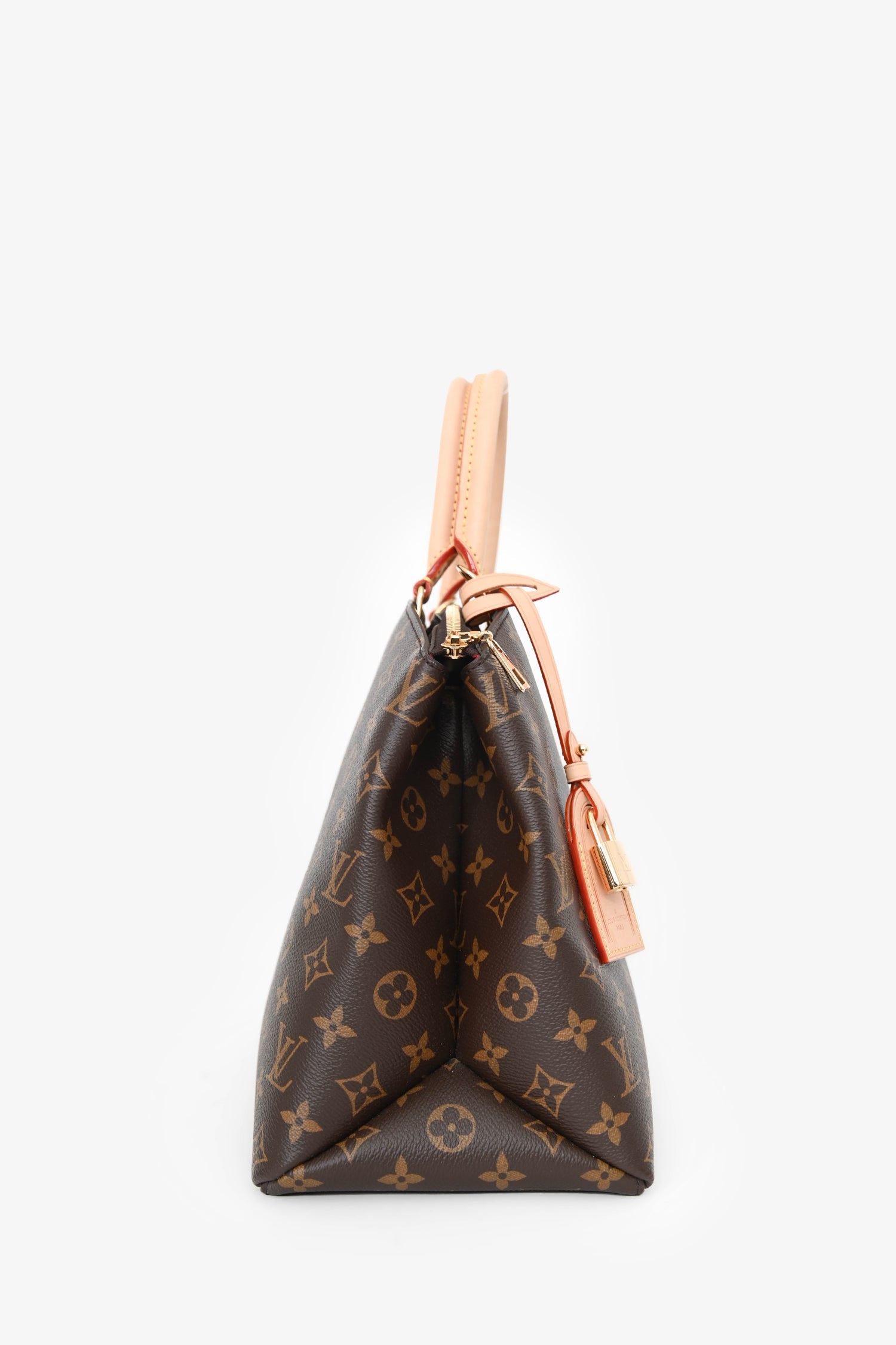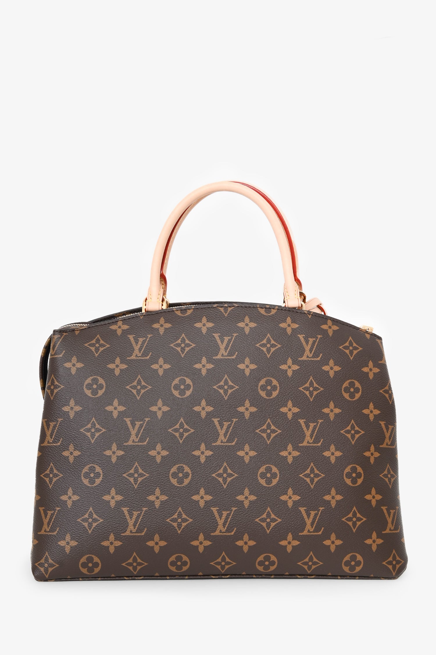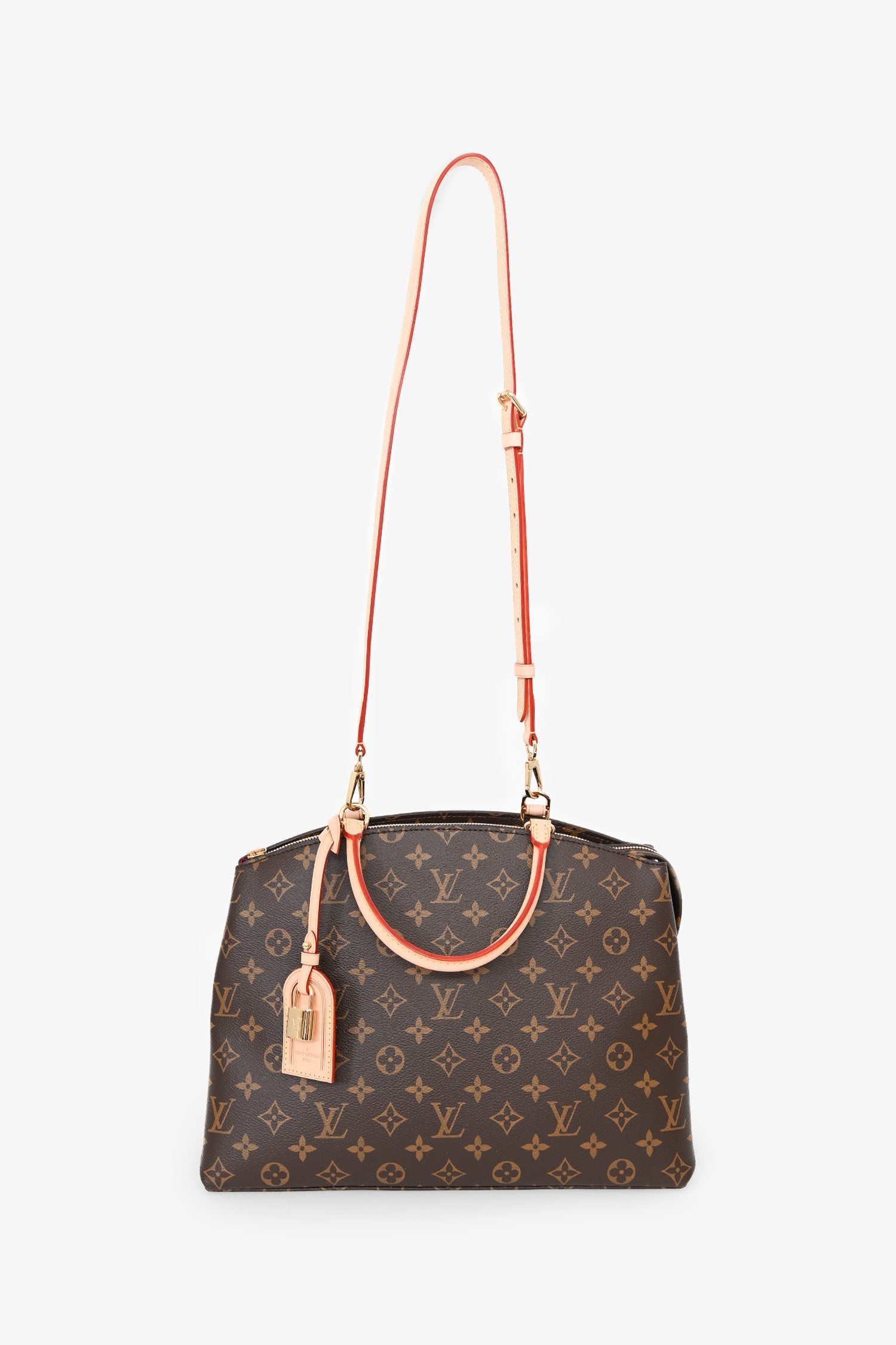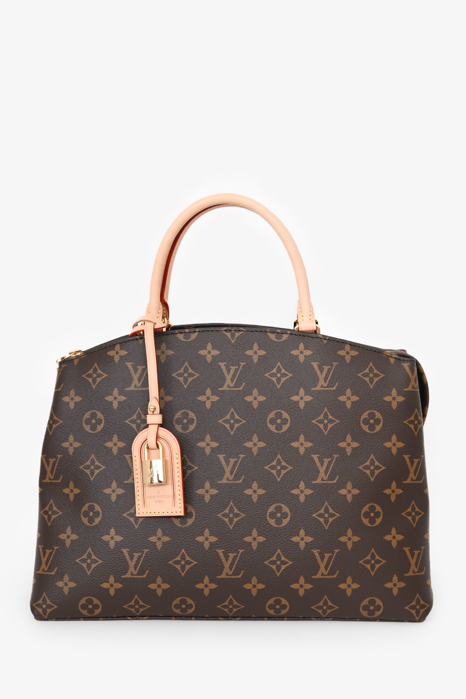 Louis Vuitton Monogram Grand Palais Bag. Top zip closure. Dual rolled top handles. Detachable and adjustable shoulder strap. Removable tag with lock. 2 exterior slip pockets; 1 interior zip pocket; 3 interior slip pockets. Gold-tone hardware. Contrast stitching.