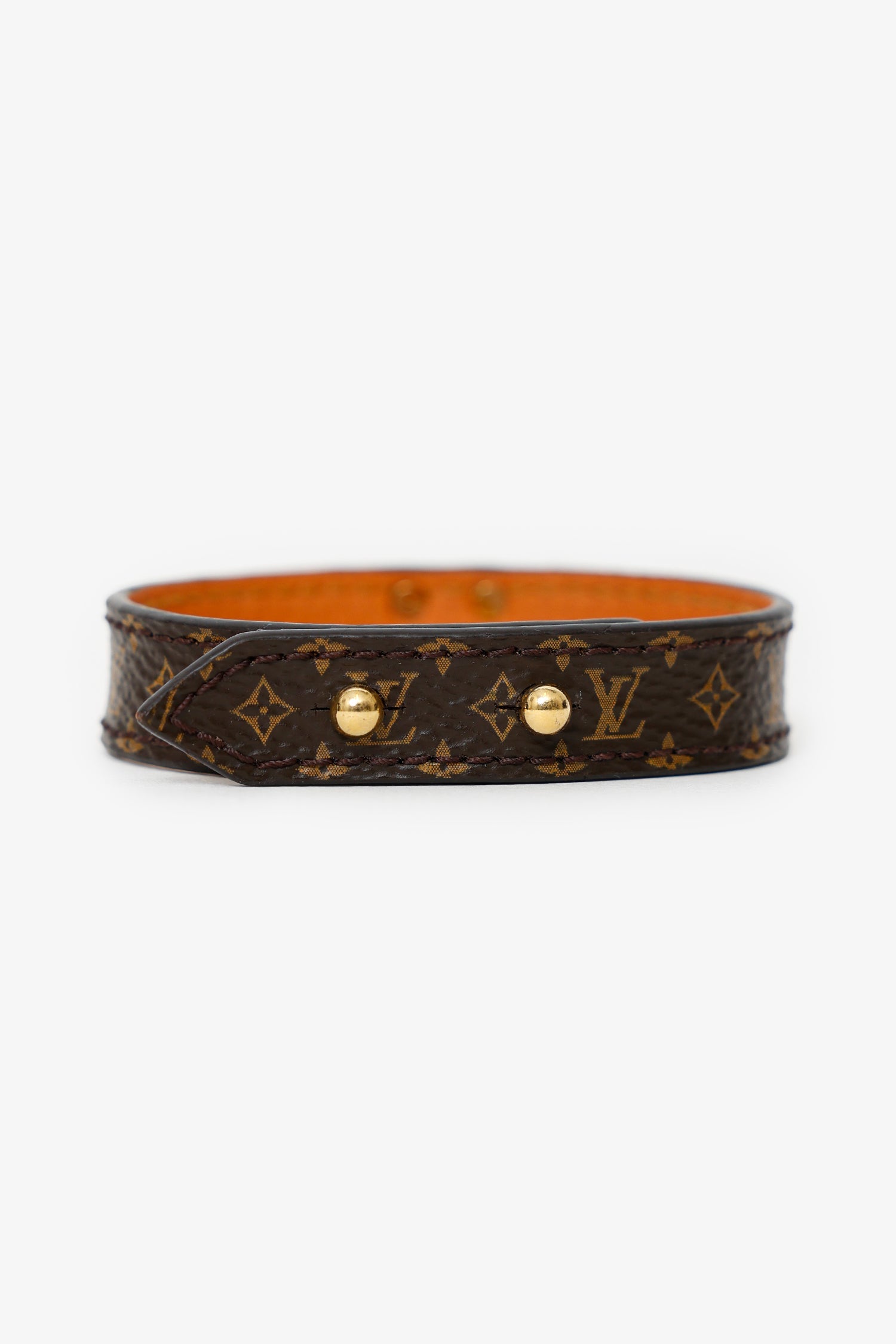 Louis Vuitton Monogram 'V' Logo Bracelet. Rear push-pin closure. Gold-tone hardware.