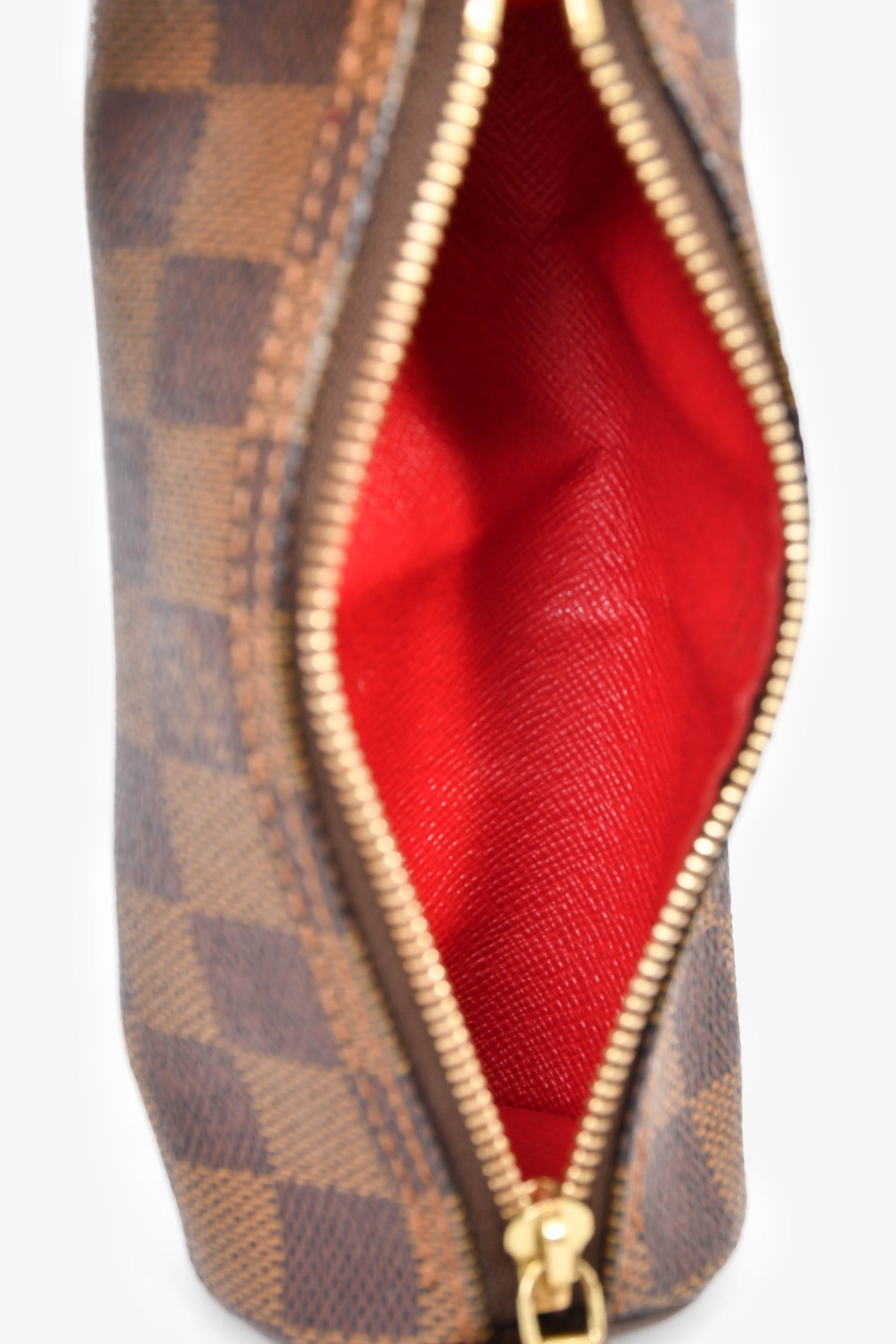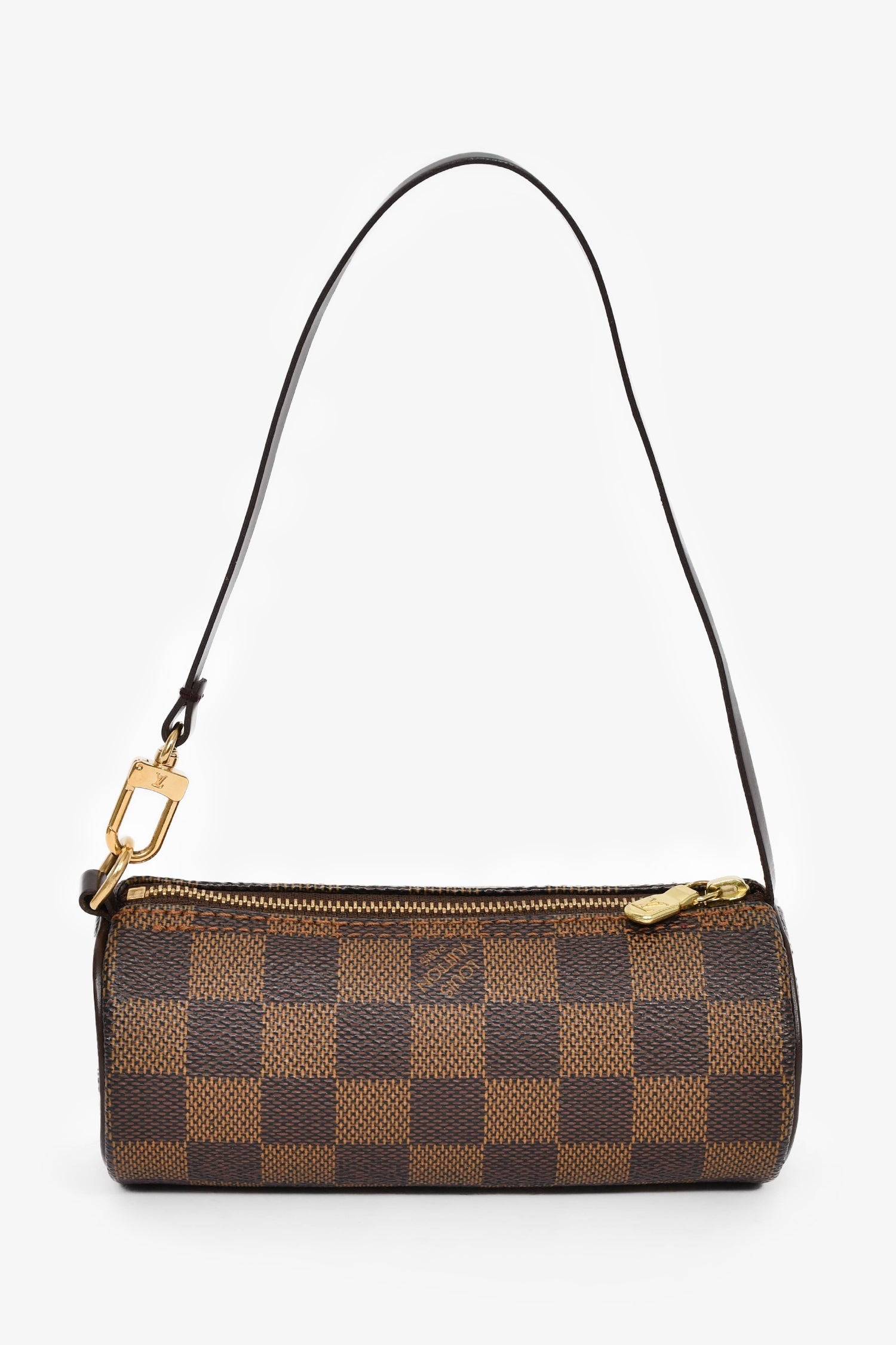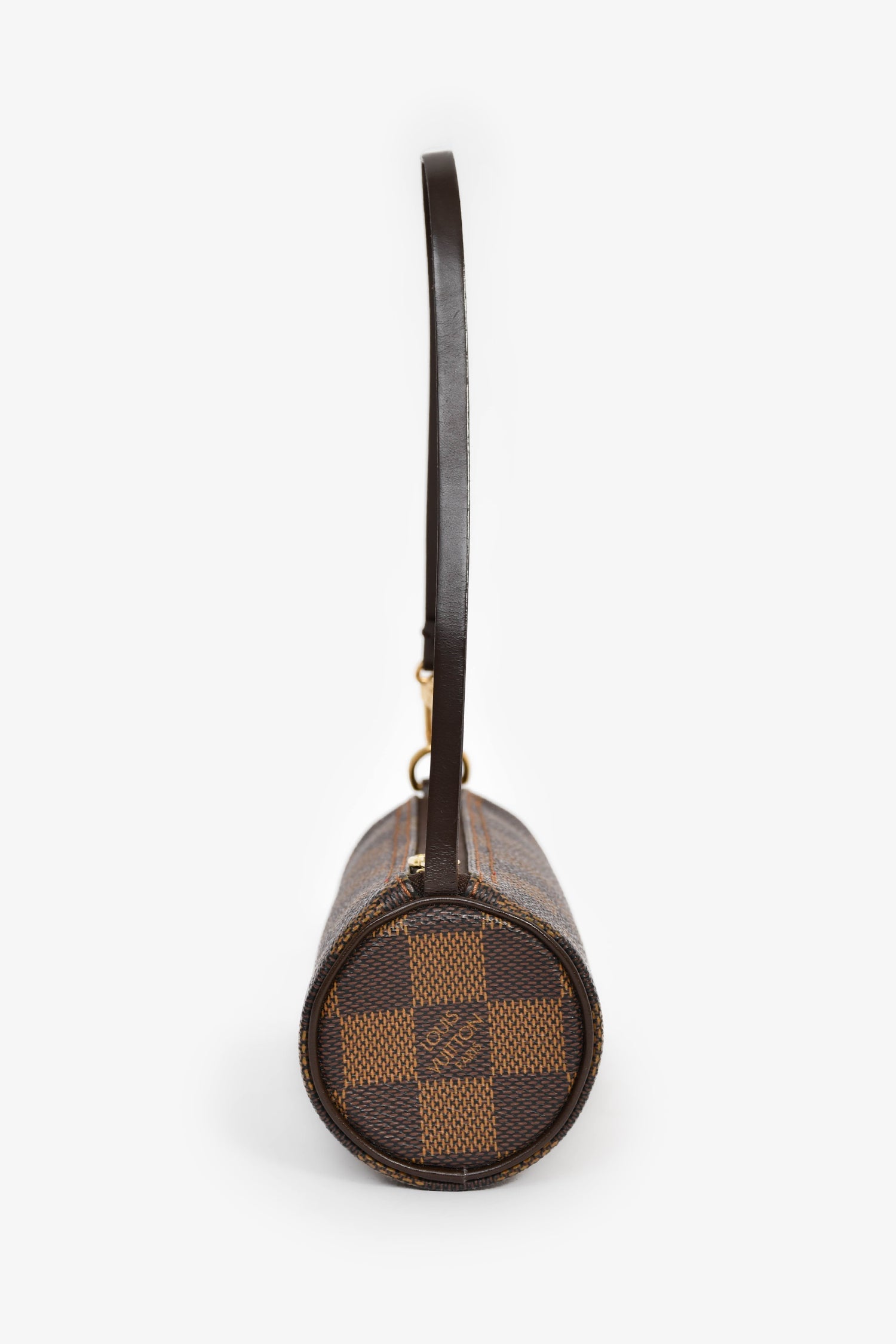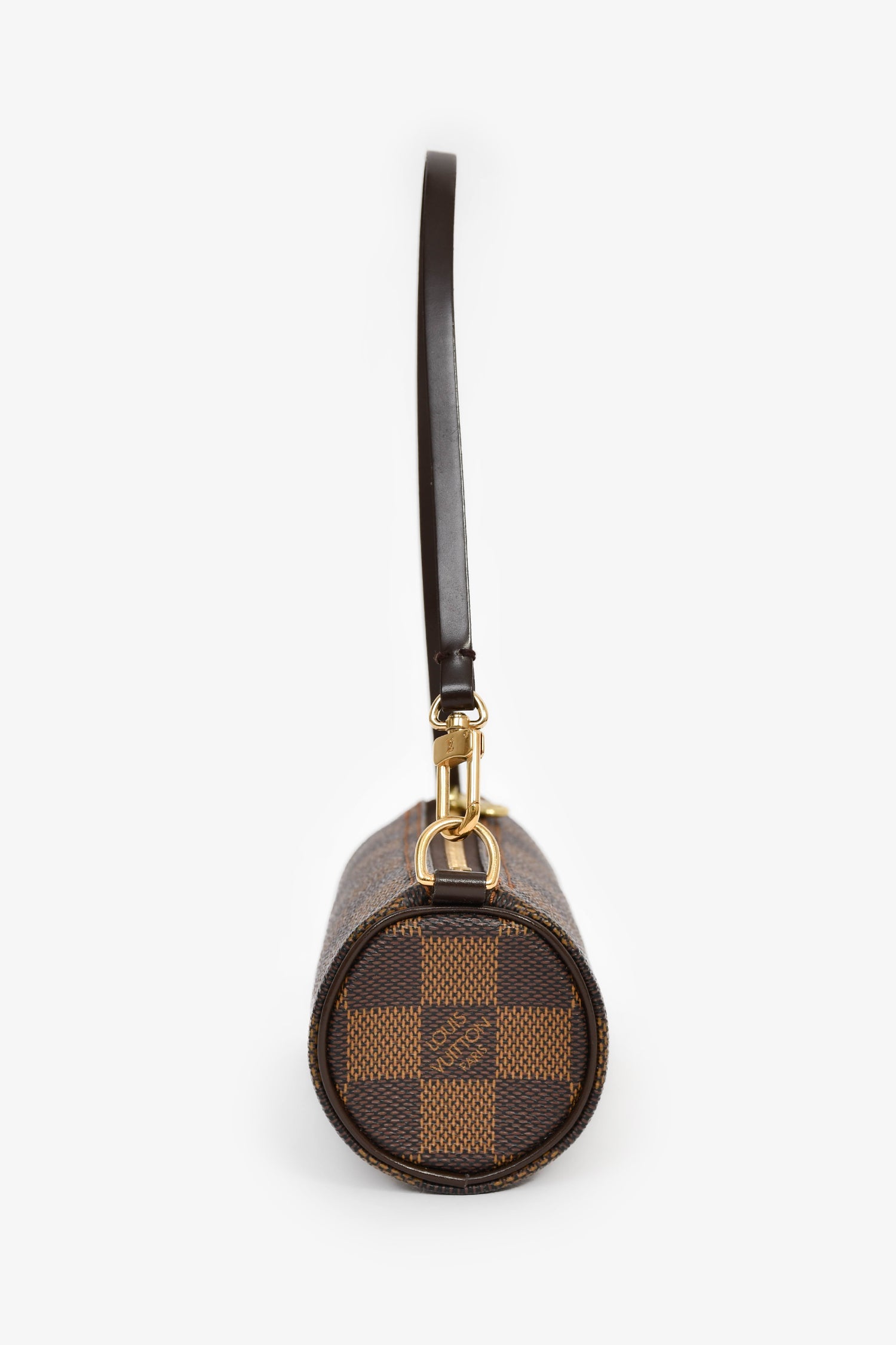 Louis Vuitton Vintage Damier Ebene Papillon Pochette. Top zip closure. Leather-lined interior. Open interior. Gold-tone hardware. Tonal stitching.