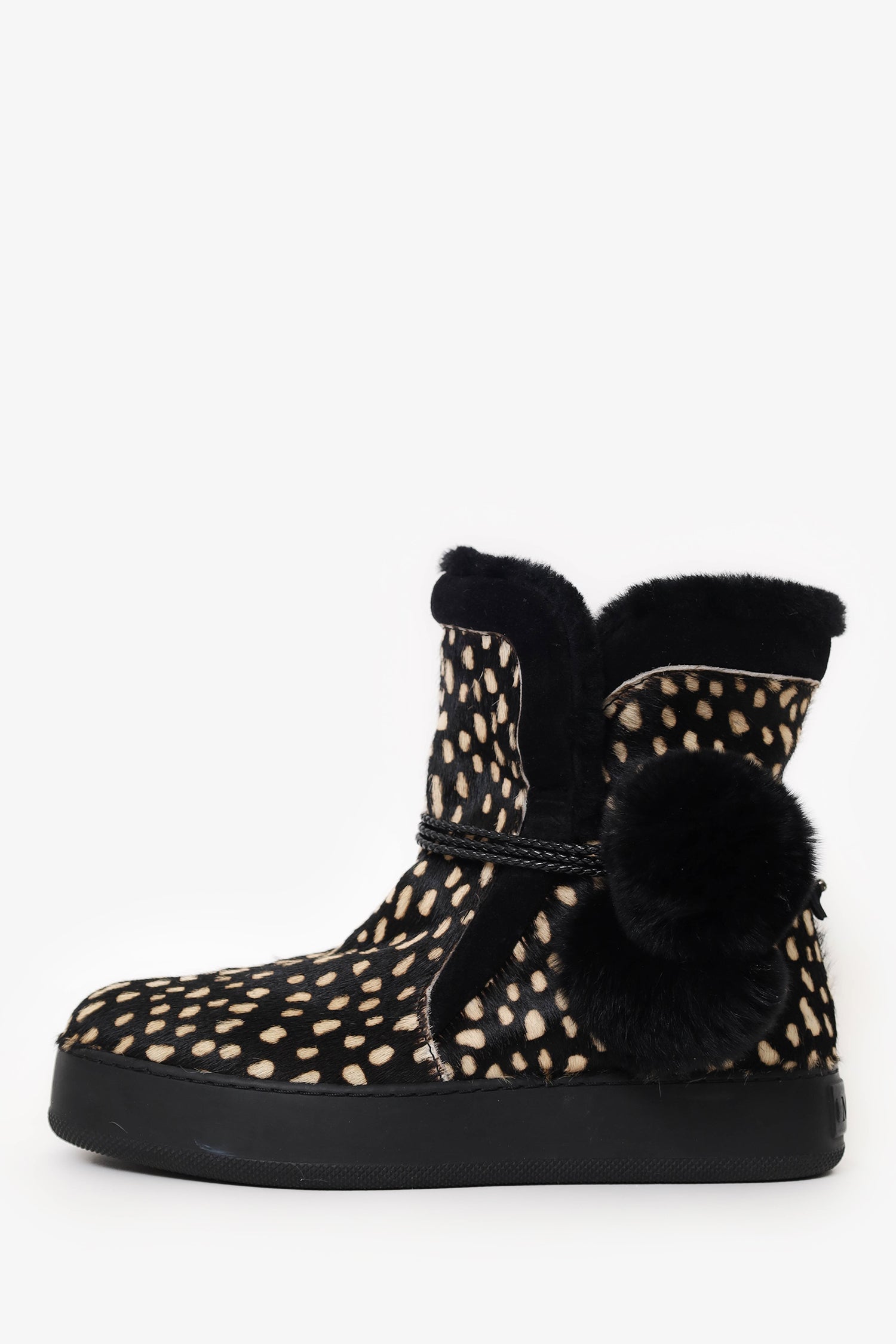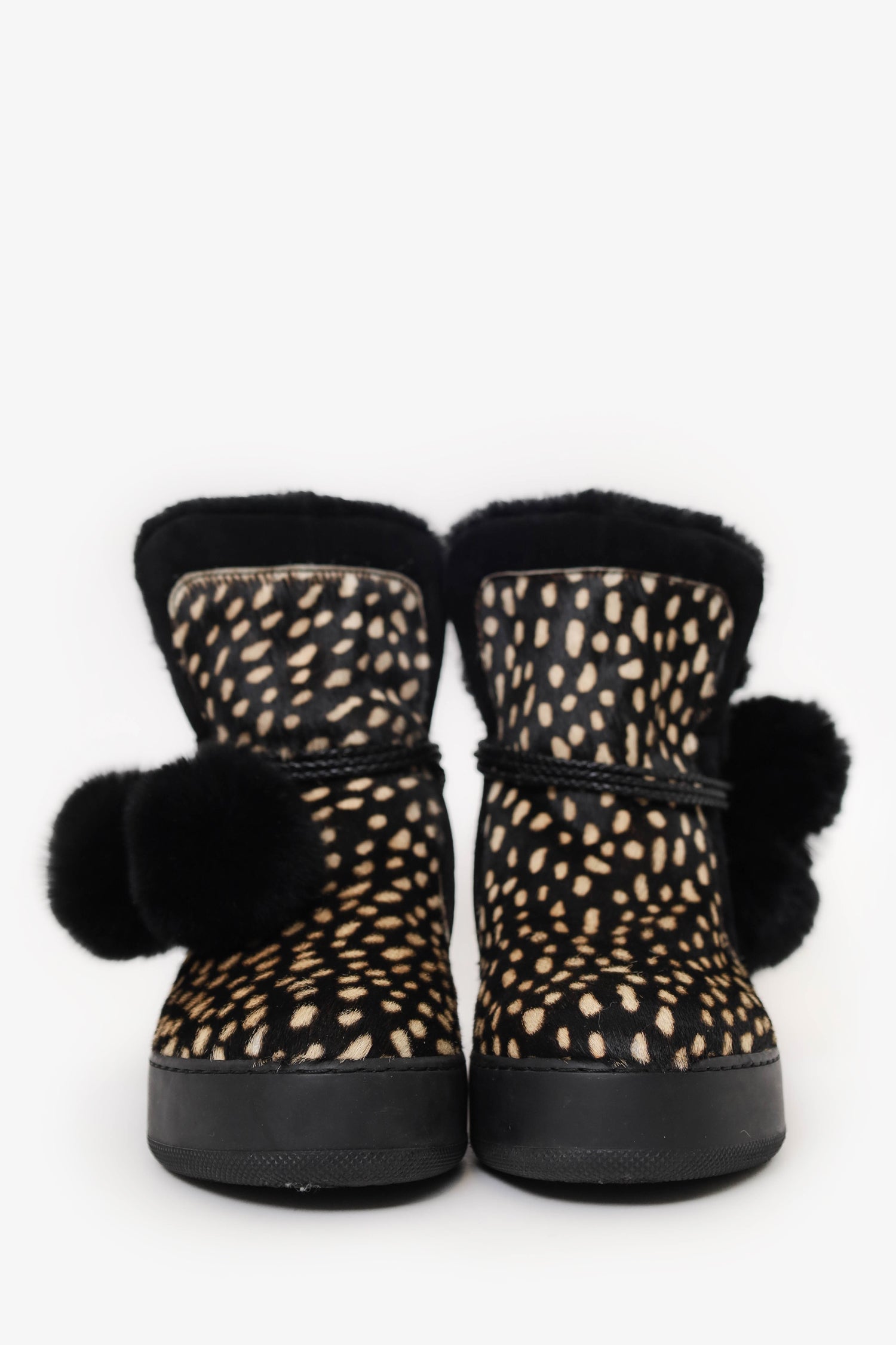 Max Mara Black/White Animal Print Pony Hair Pom Pom Winter Boots Size 37