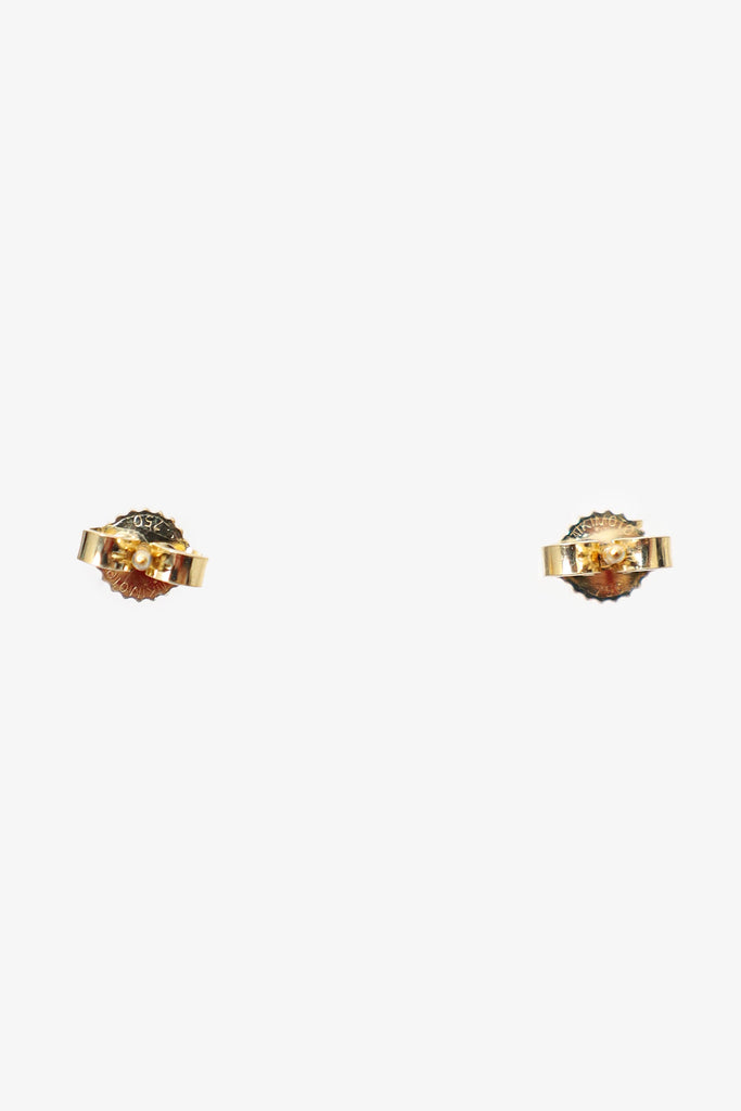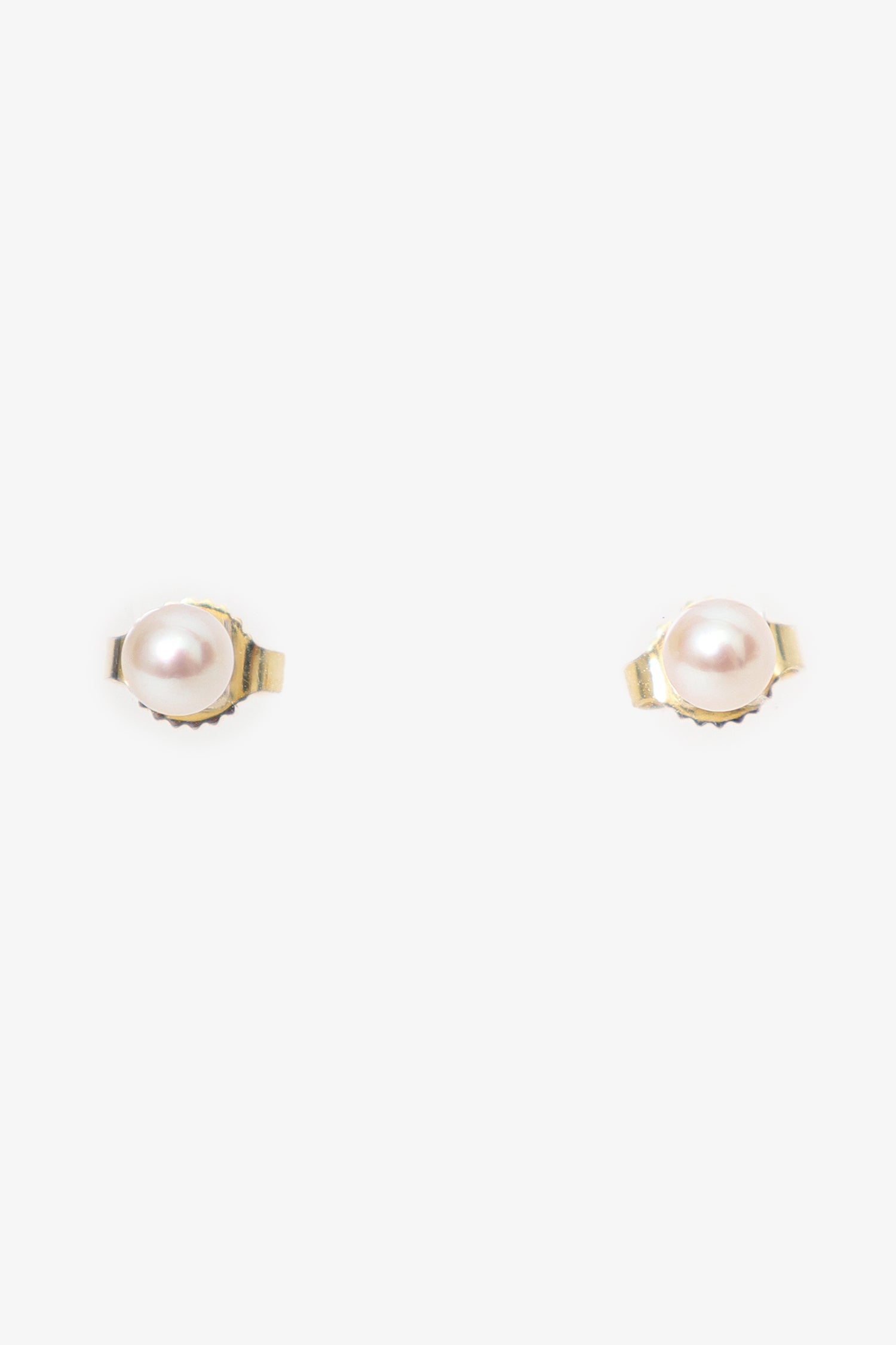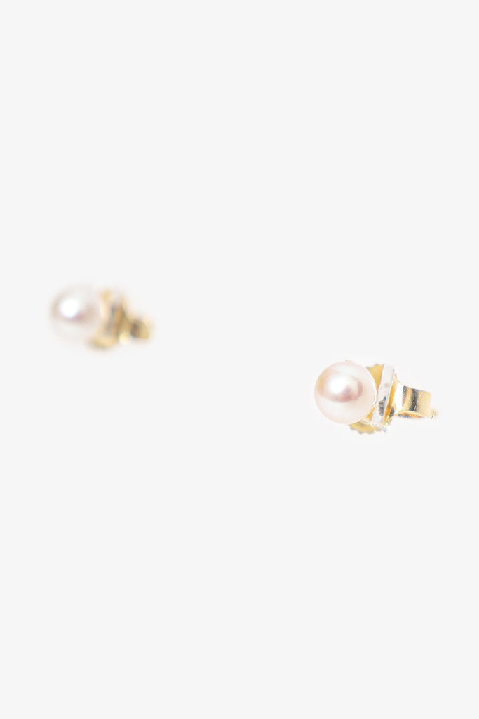 Mikimoto 18K Yellow Gold Pearl Stud Earring. Classic style stud earrings with butterfly backs. Trademark found on item. Gold-tone hardware.