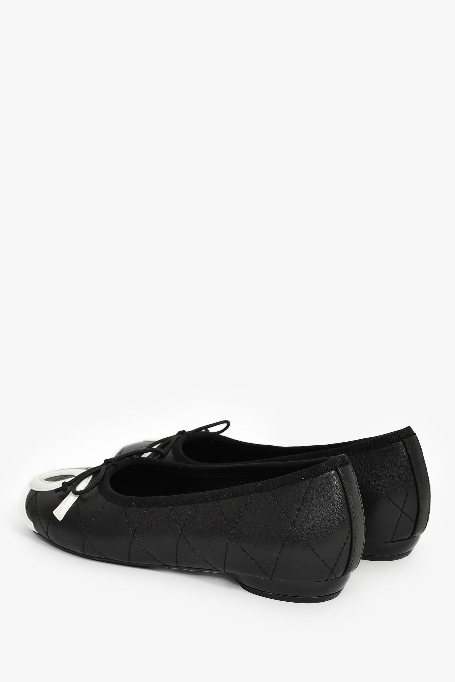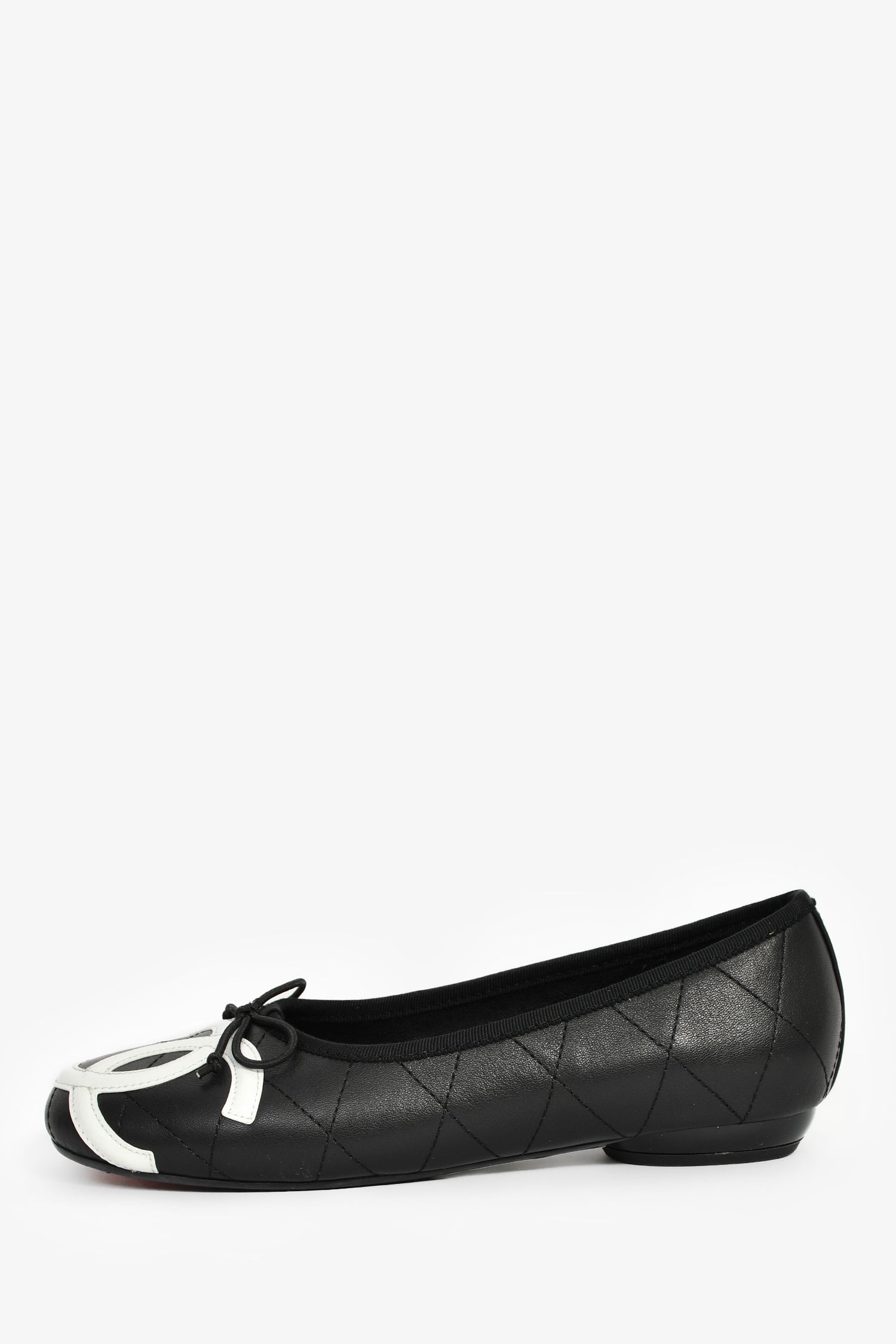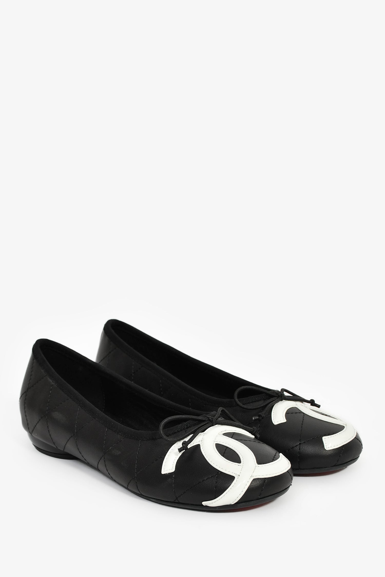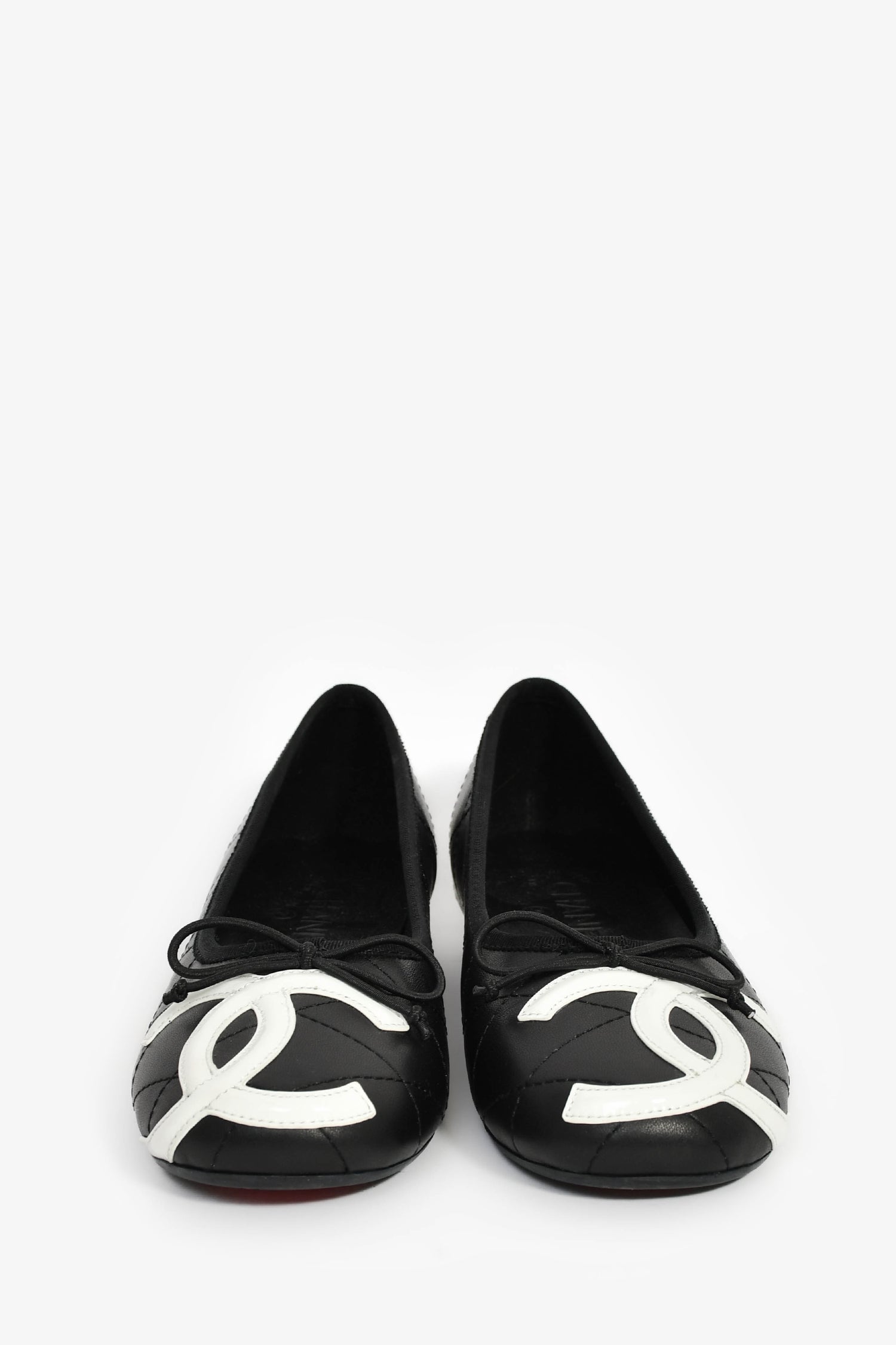Pre-Loved Chanel™ 2004 Black/White 'Cambon' CC Ballet Flats Size 36