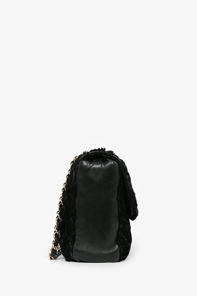 Pre-loved Chanel™ 2008/09 Black Rabbit Fur/Calfskin Leather Flap Bag