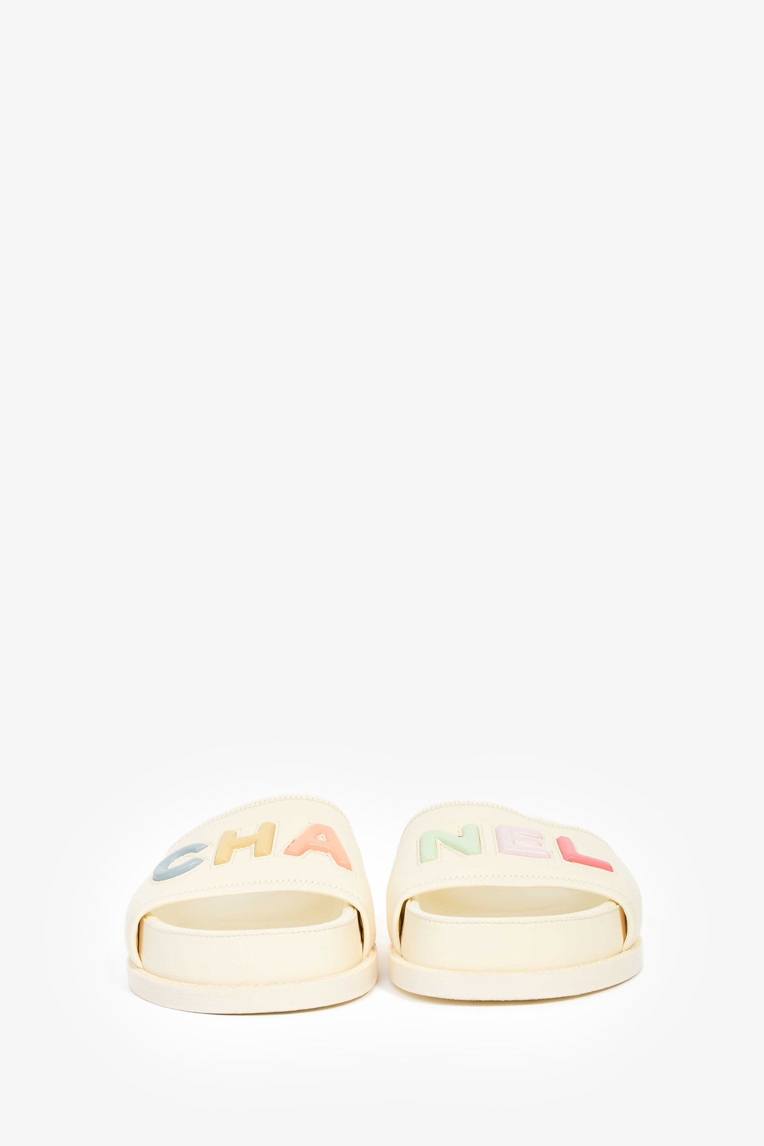 Pre-Loved Chanel™ 2022 Cream Leather Pastel 'CHANEL' Slides Size 38