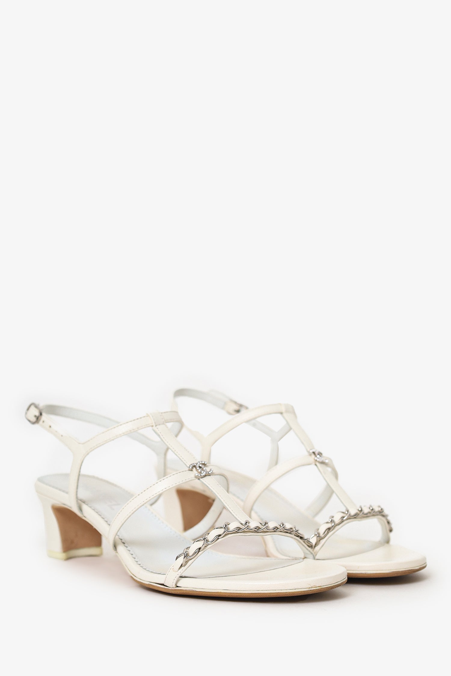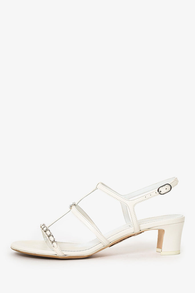 Pre-Loved Chanel™ 2023 White Leather Interlocking CC Logo Slingback Sandals Size 39.5