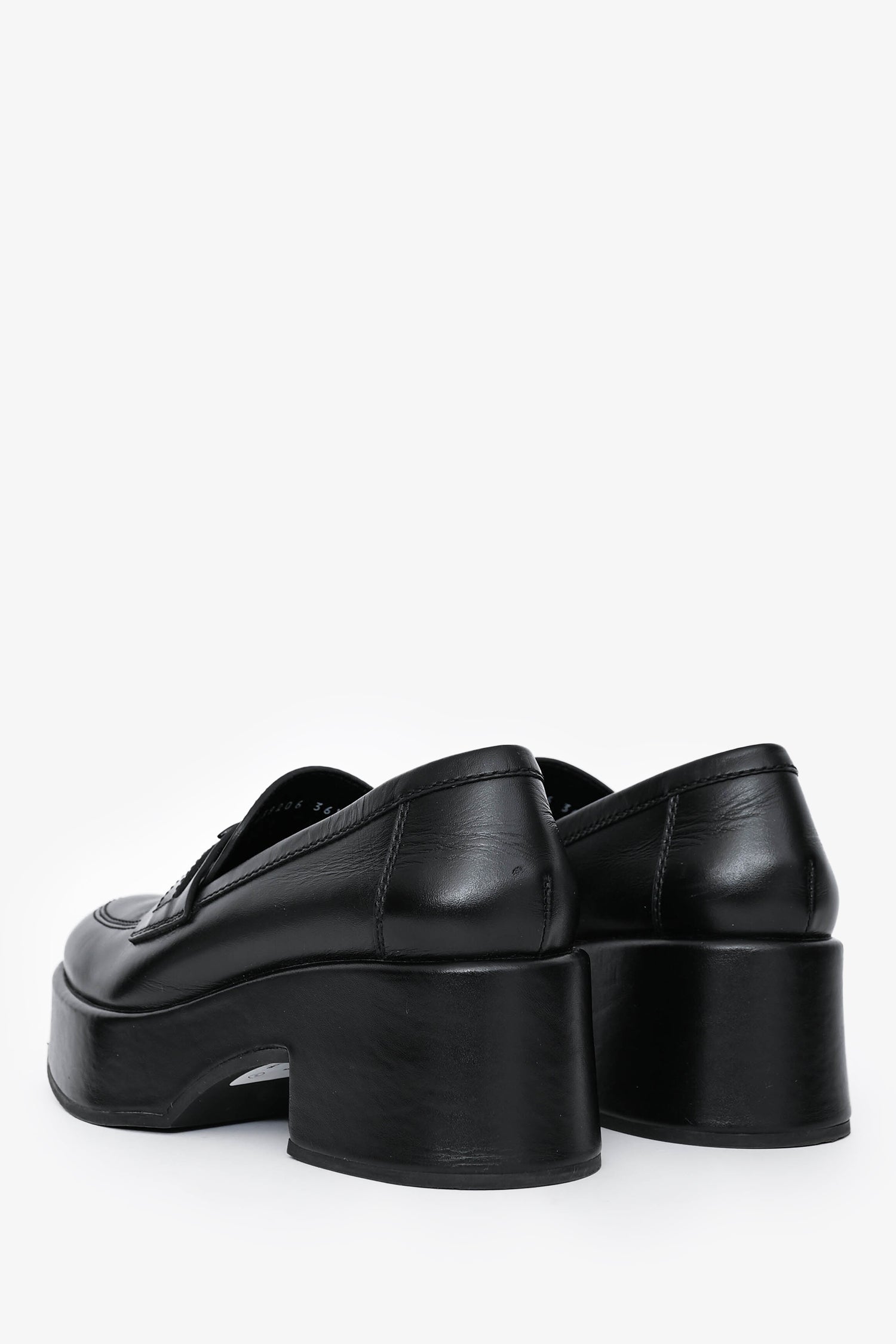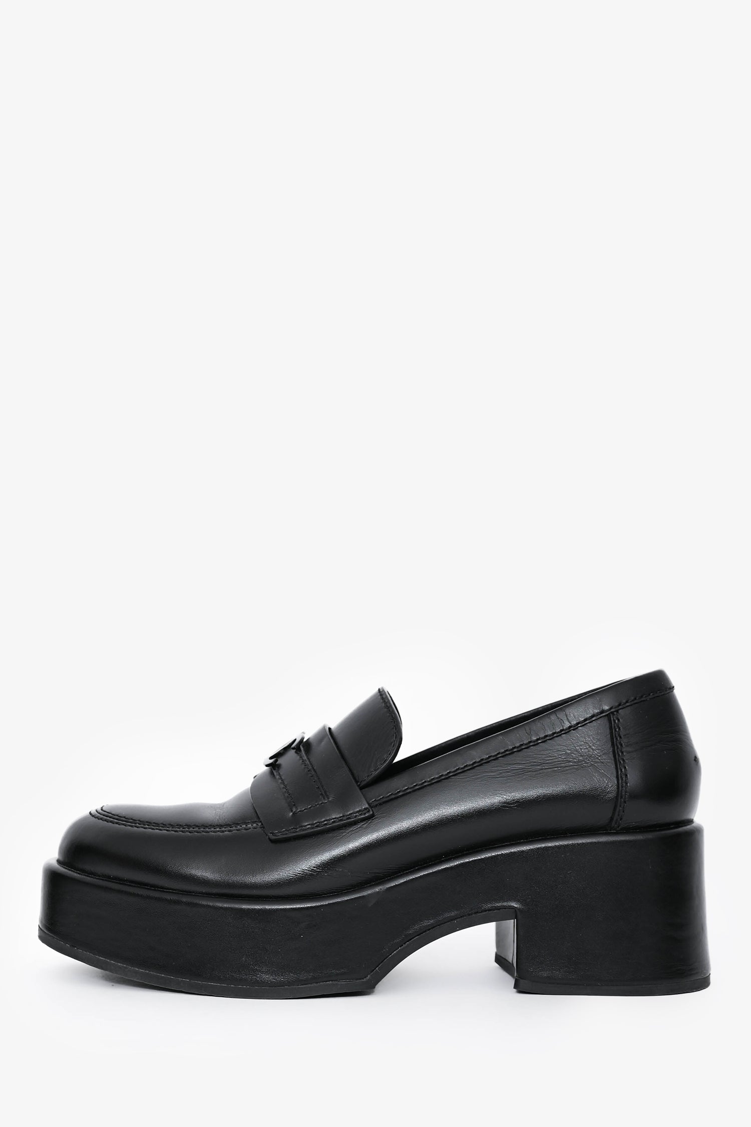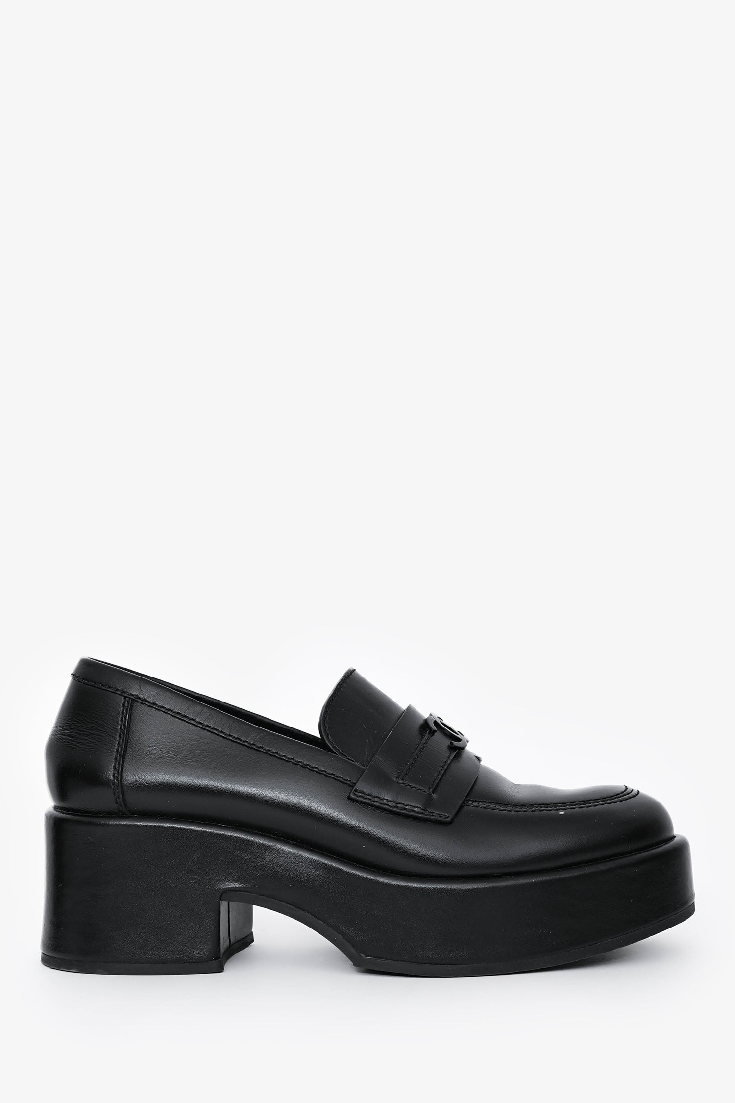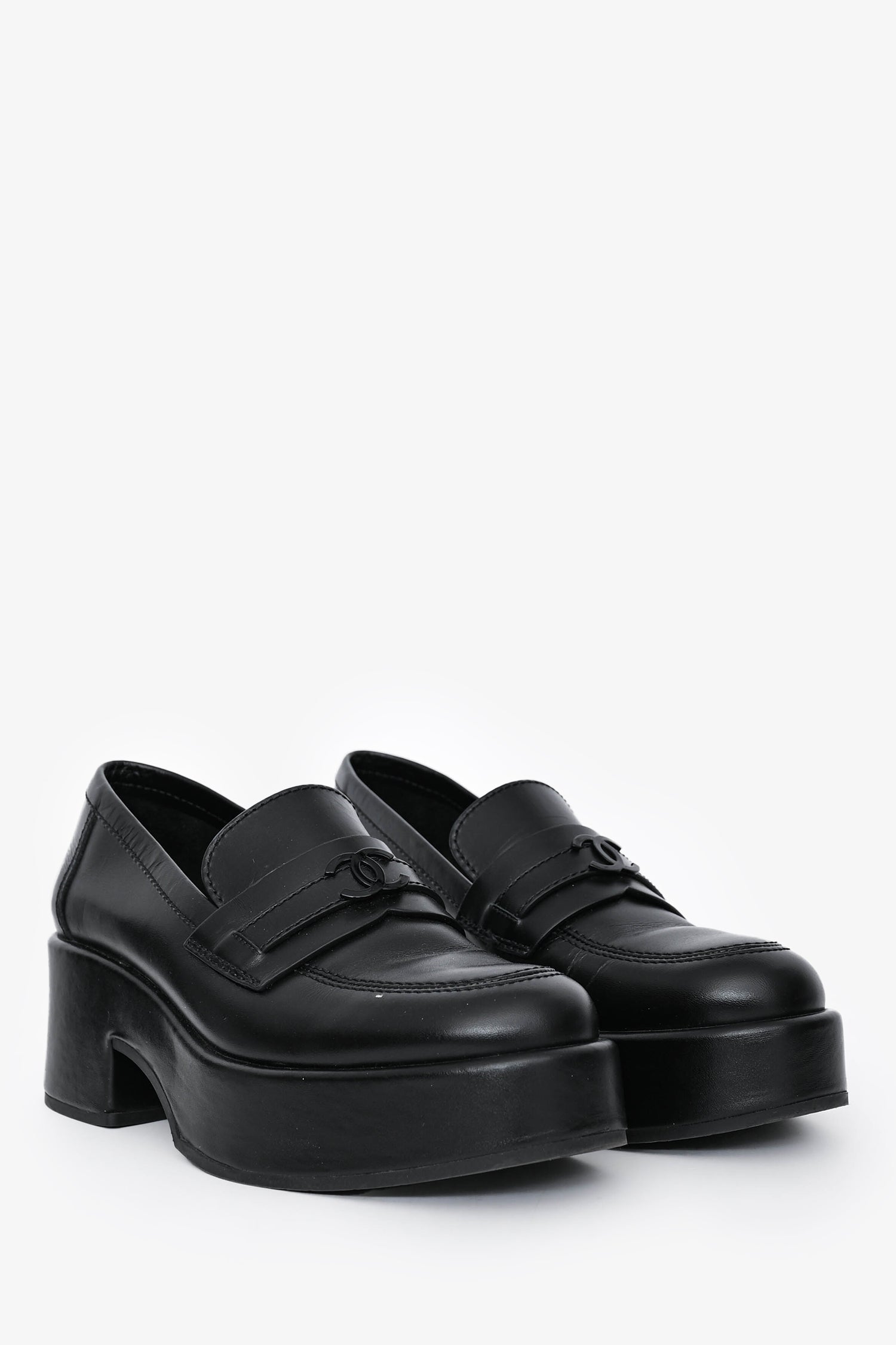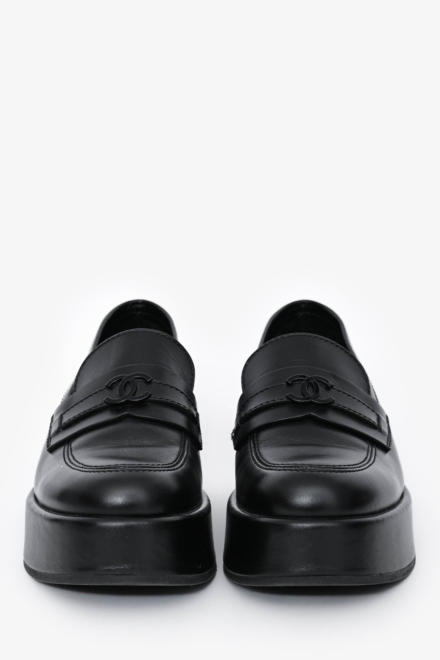 Pre-Loved Chanel™ Black Leather Platform Loafers Size 36.5