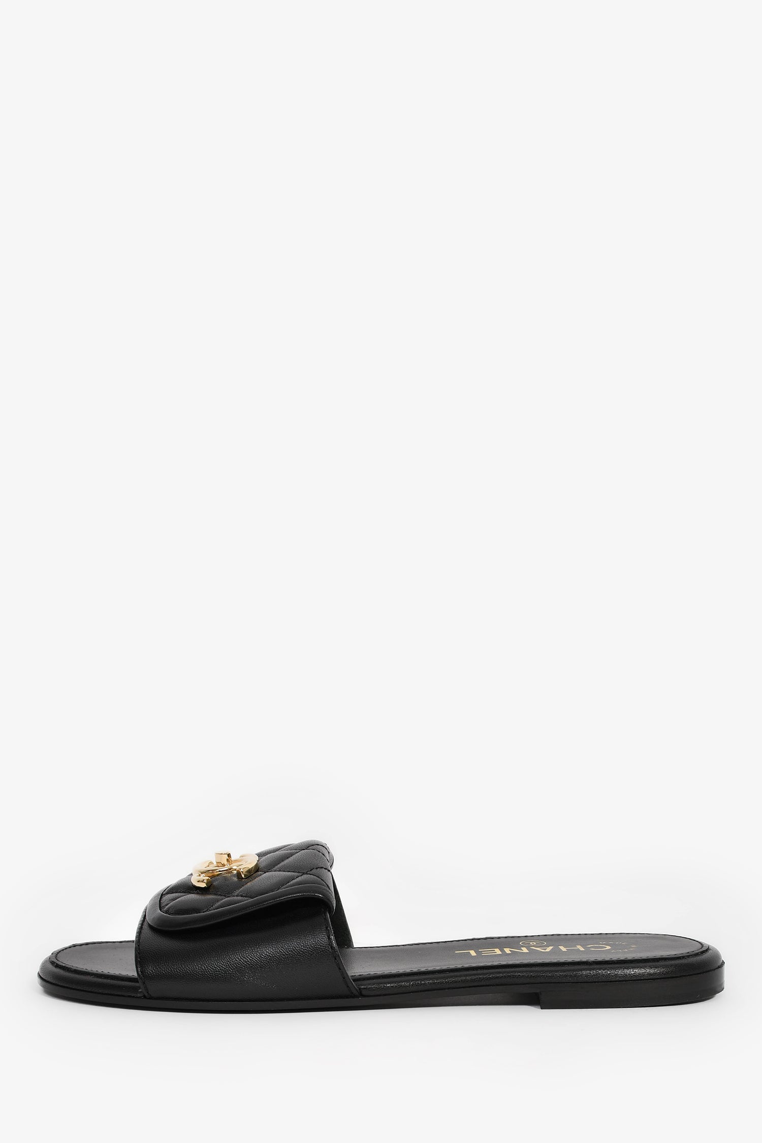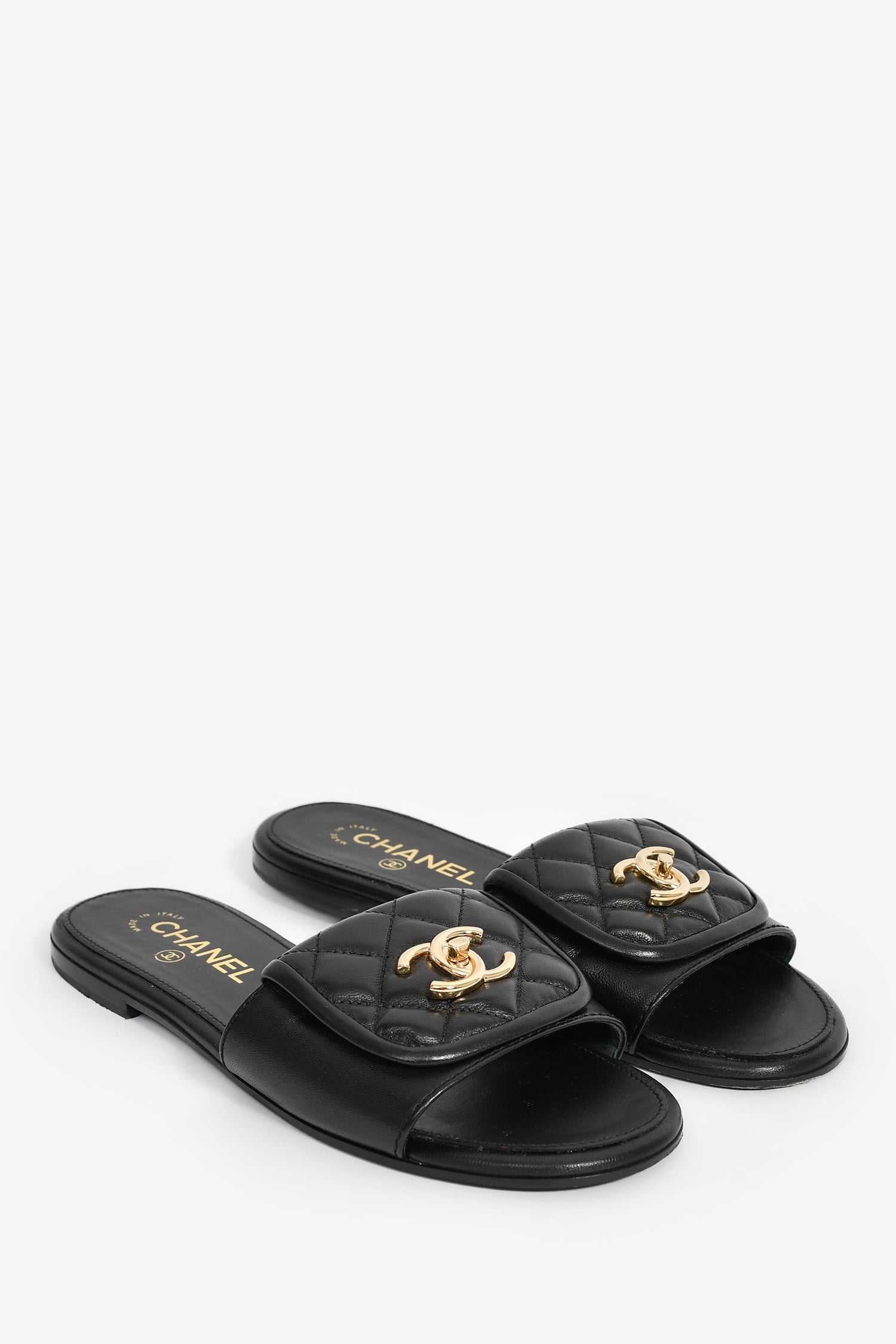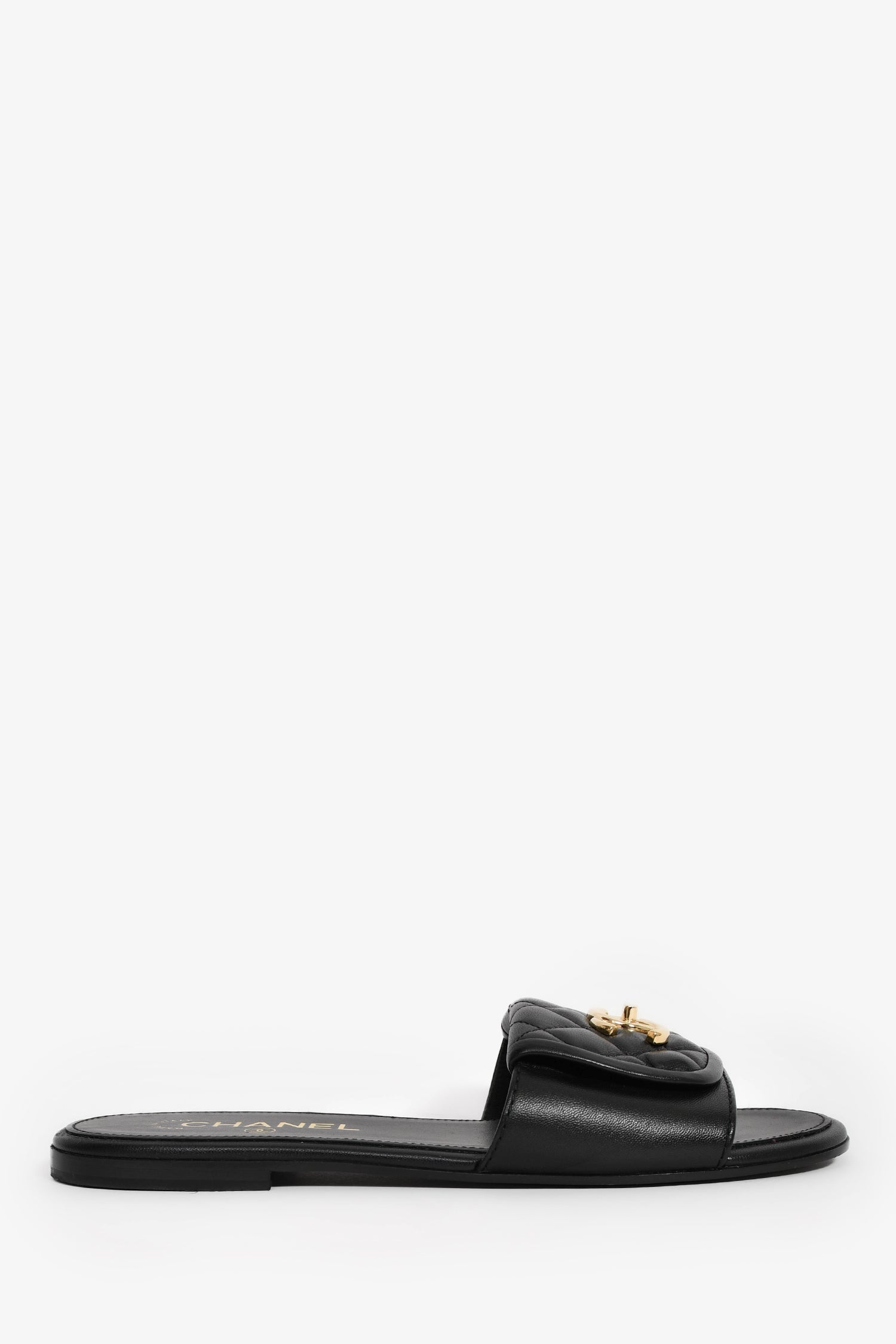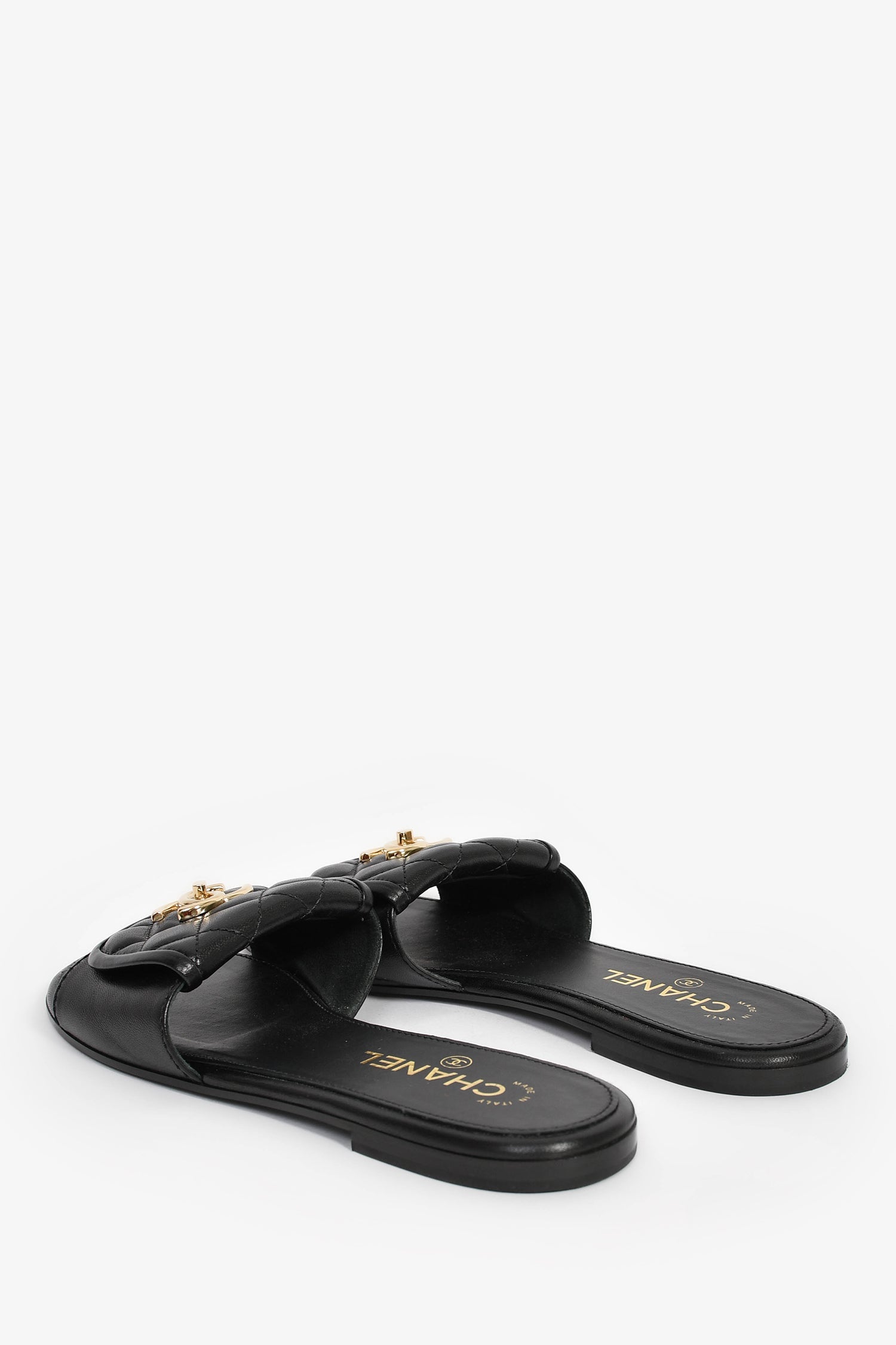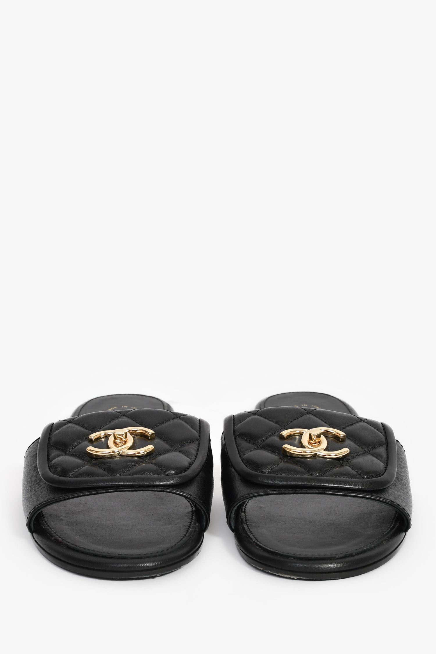 Pre-Loved Chanel™ Black Leather Quilted Interlocking CC Slides Size 38