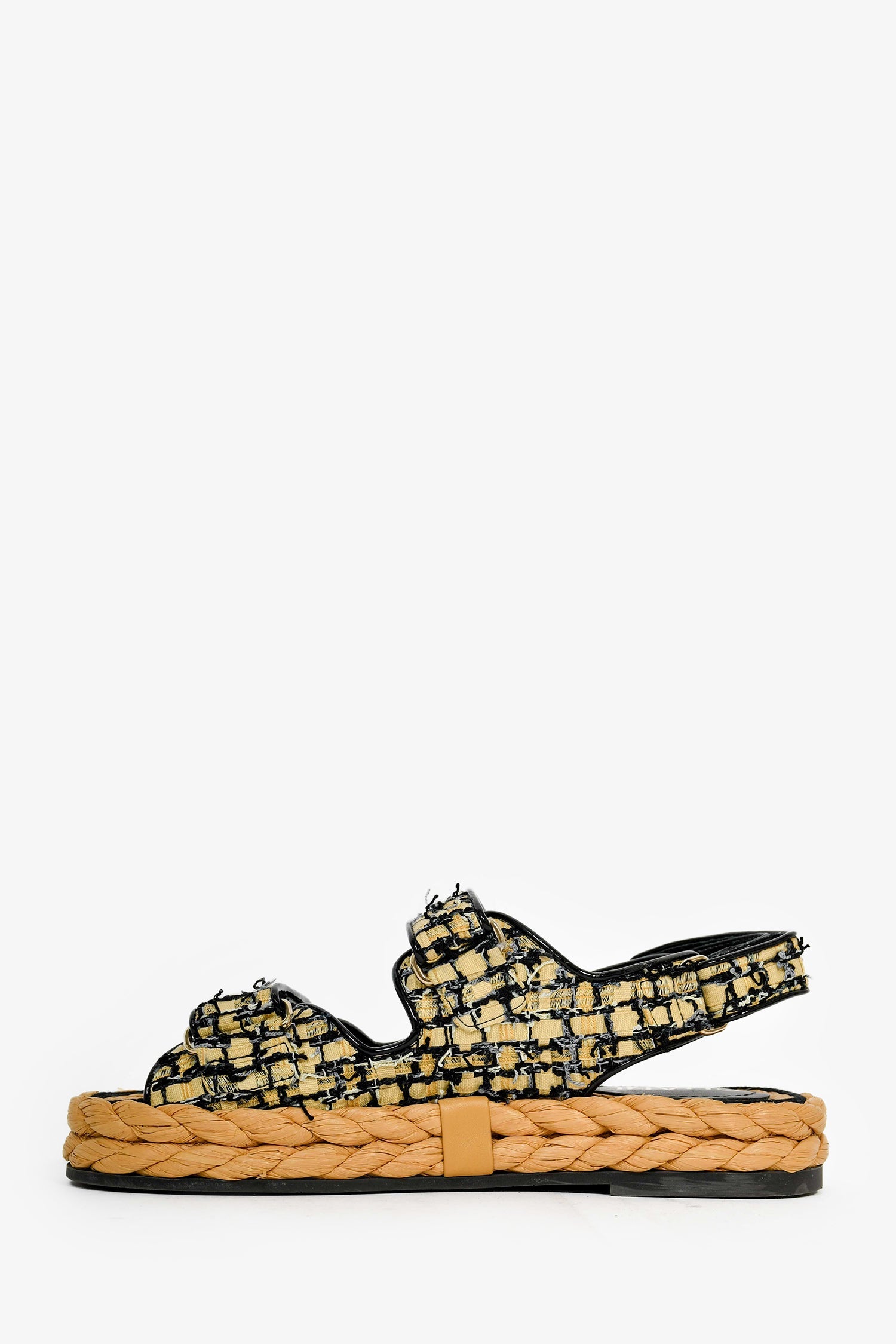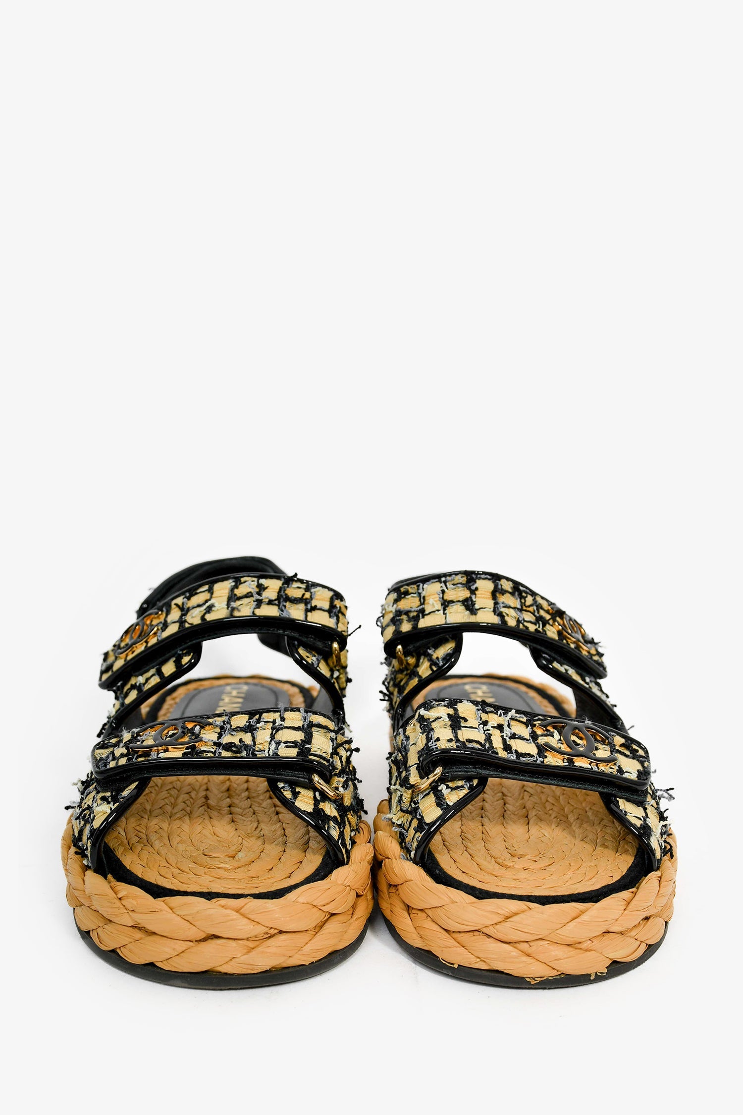 Pre-Loved Chanel™ Black/Yellow Tweed CC Braided Dad Sandals Size 37
