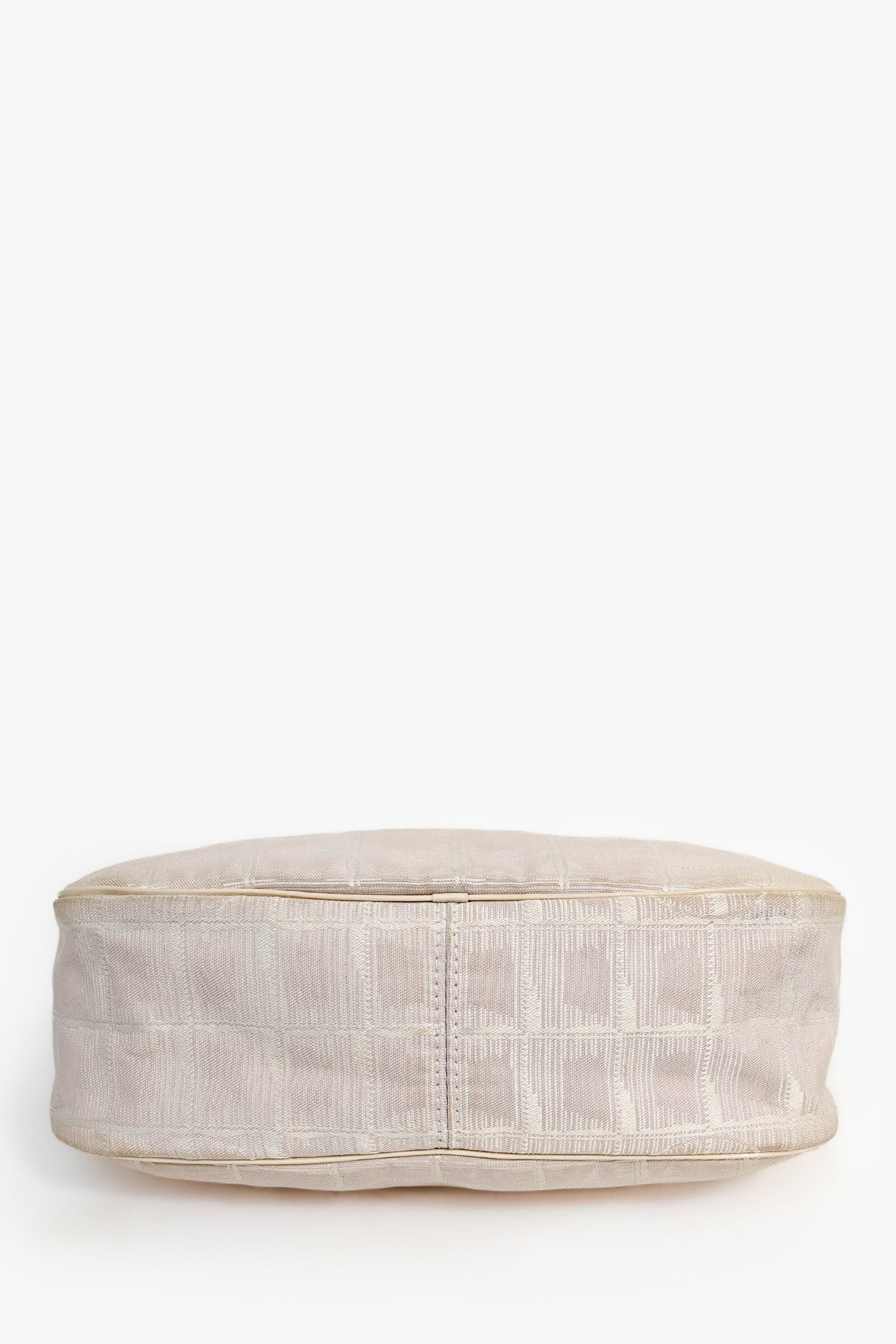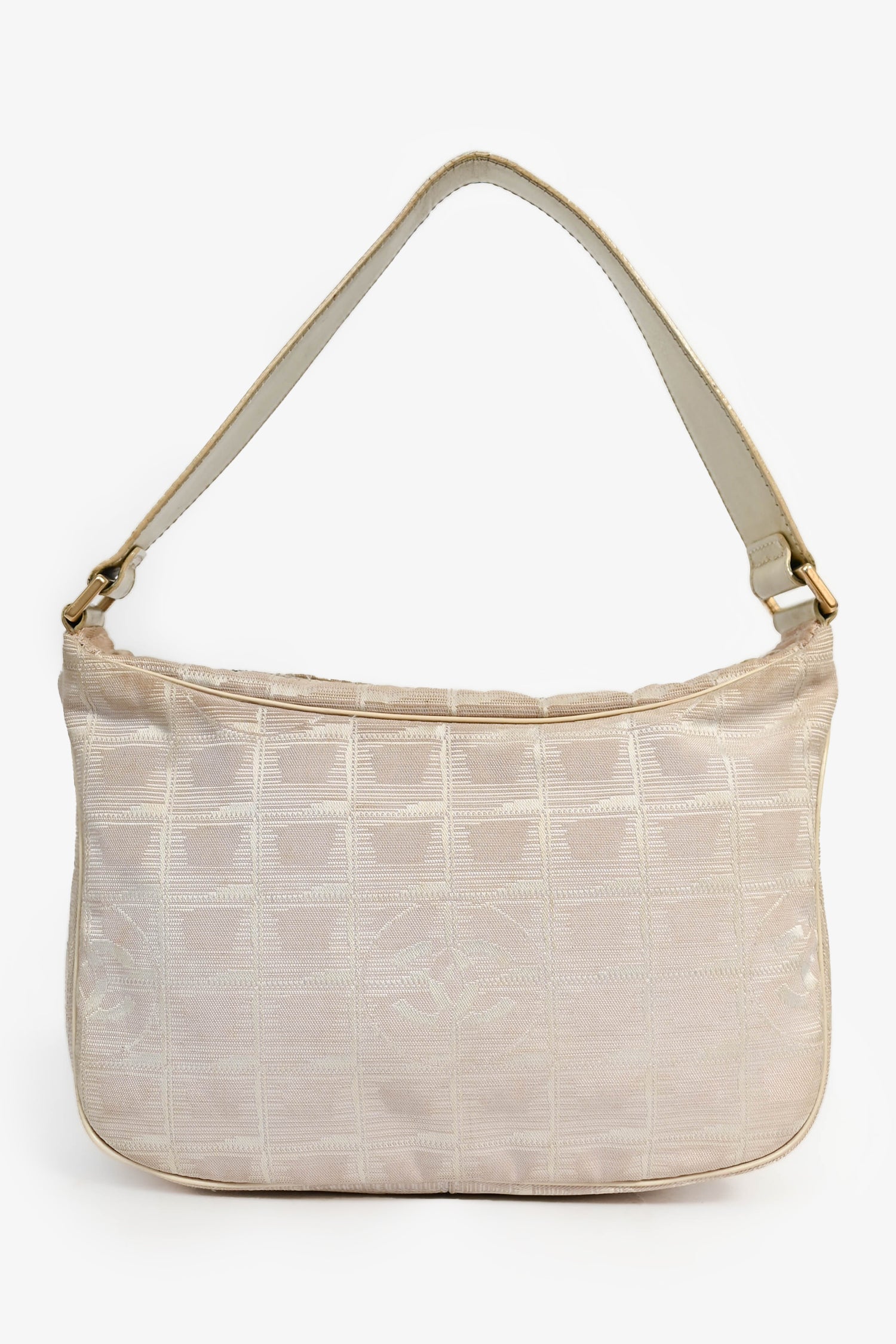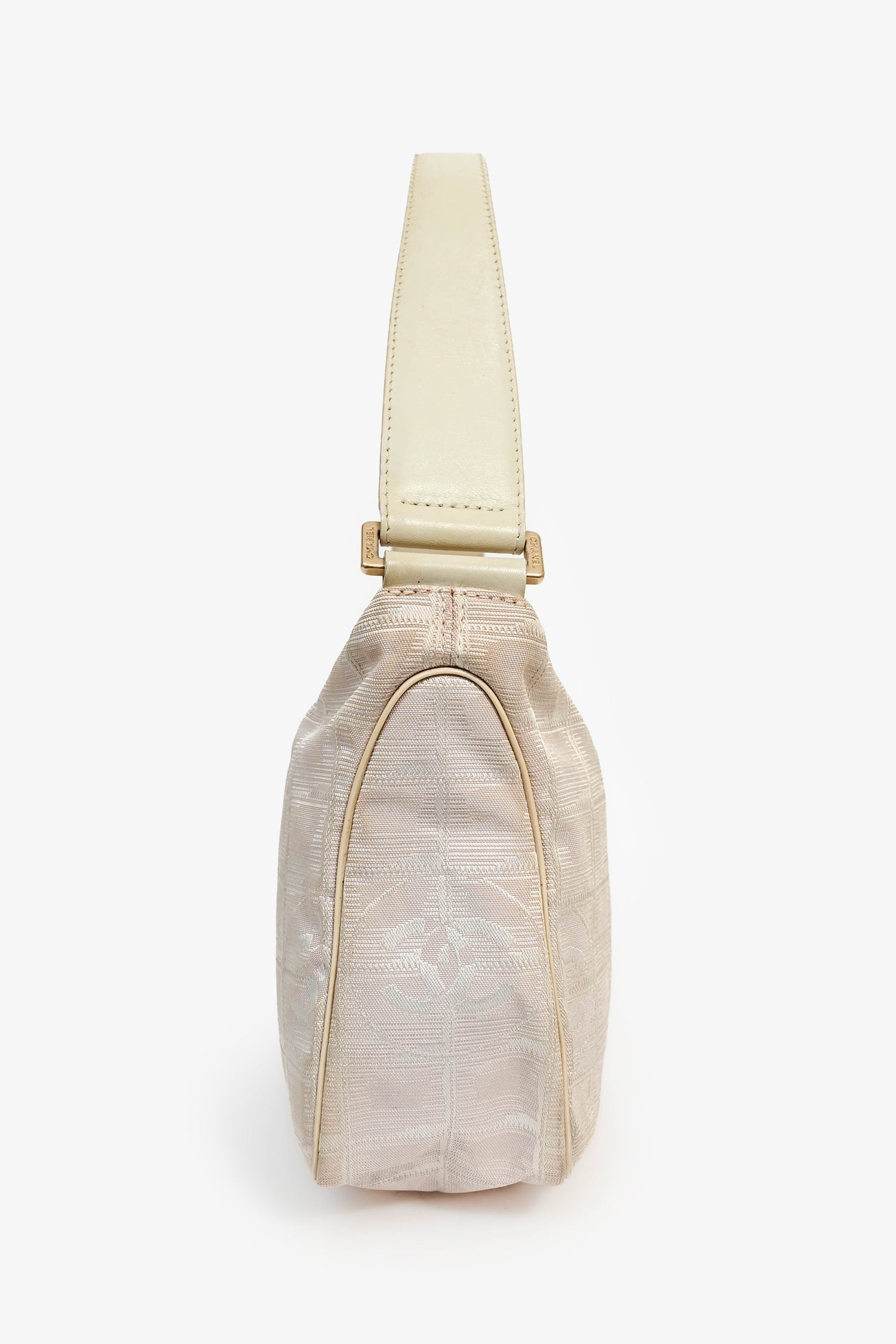 Pre-Loved Chanel™ Pink Nylon Travel Ligne Shoulder Bag. Top zipper closure. Single interior compartment with a wall zip pocket. Tonal textile lining. Gold-tone hardware. Tonal stitching.