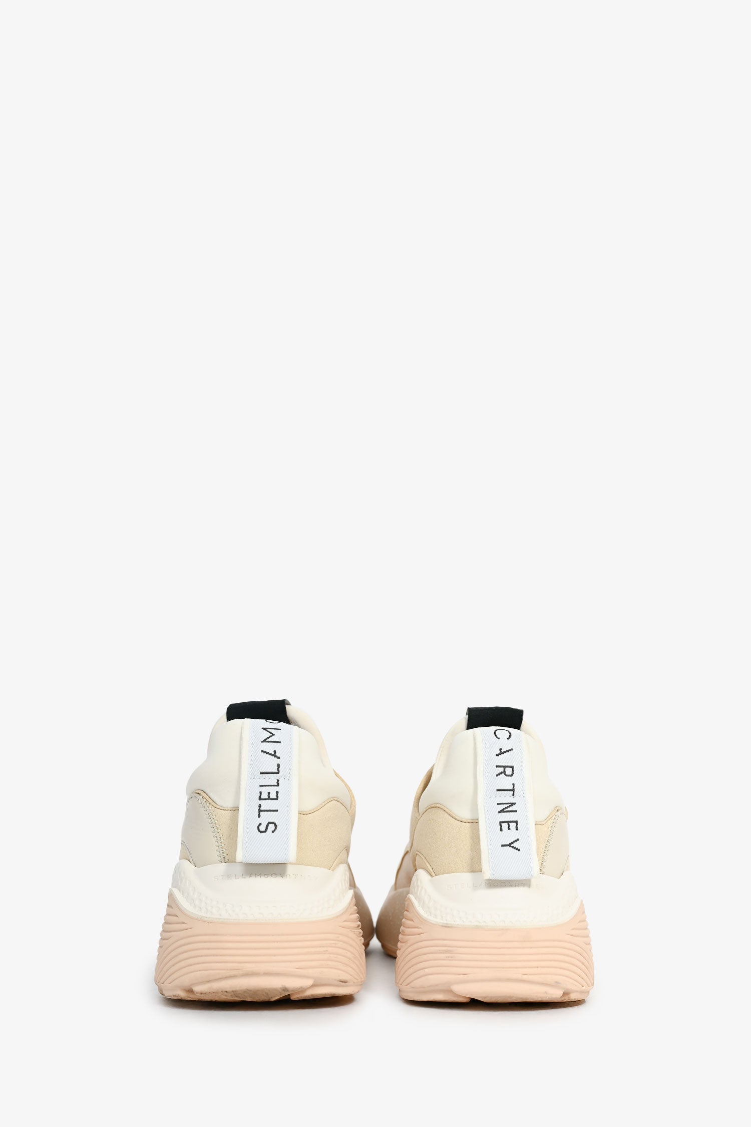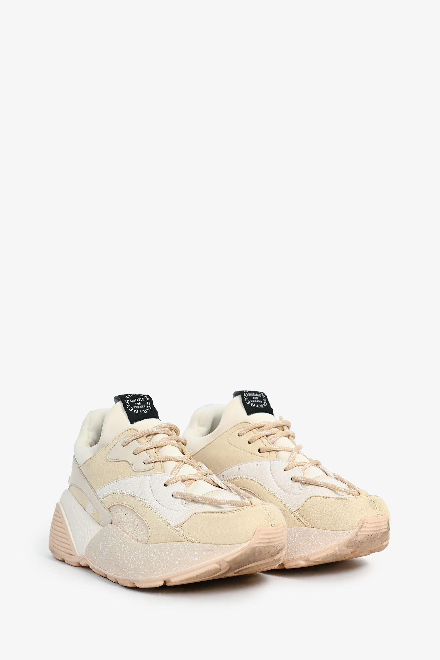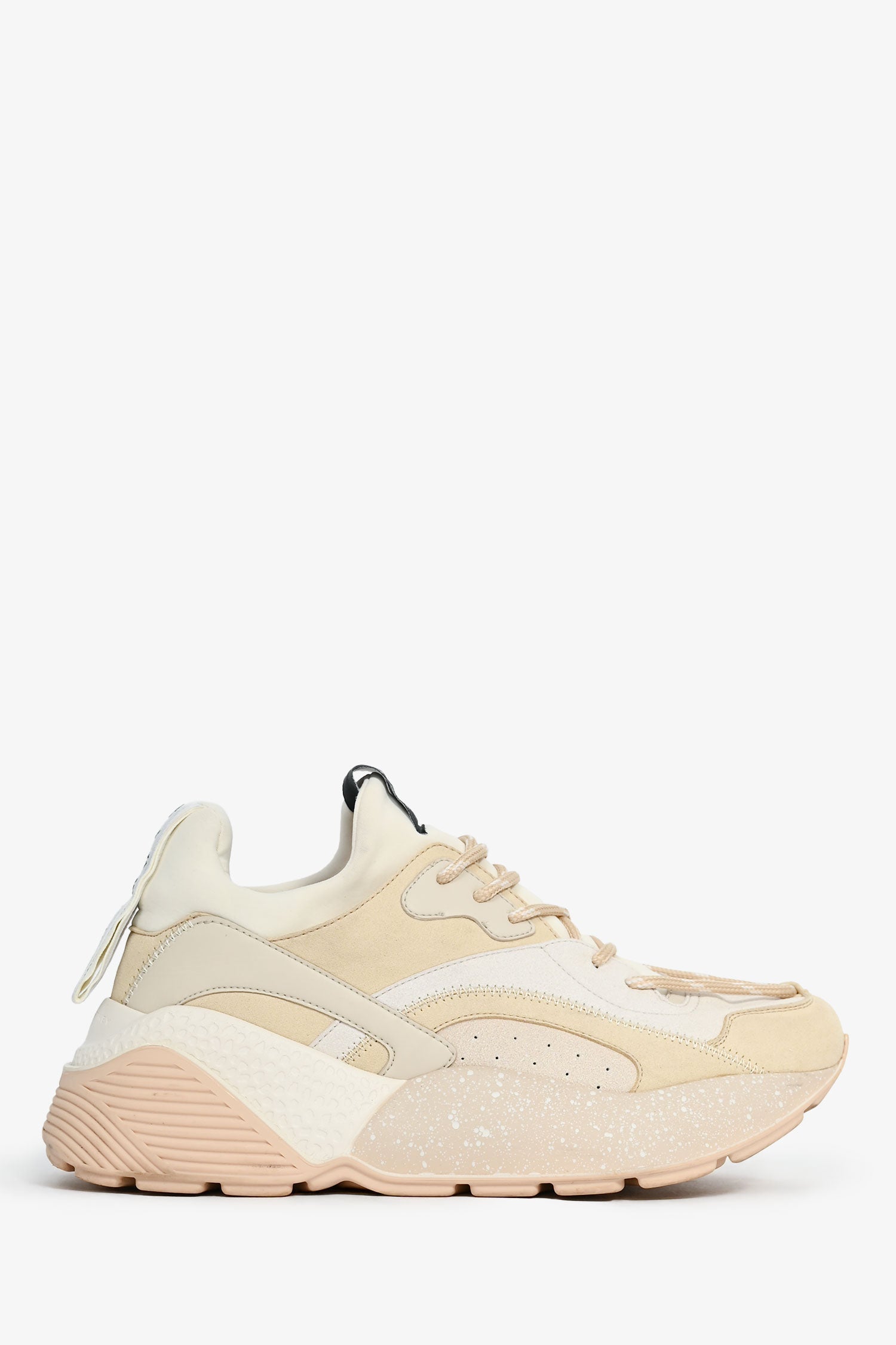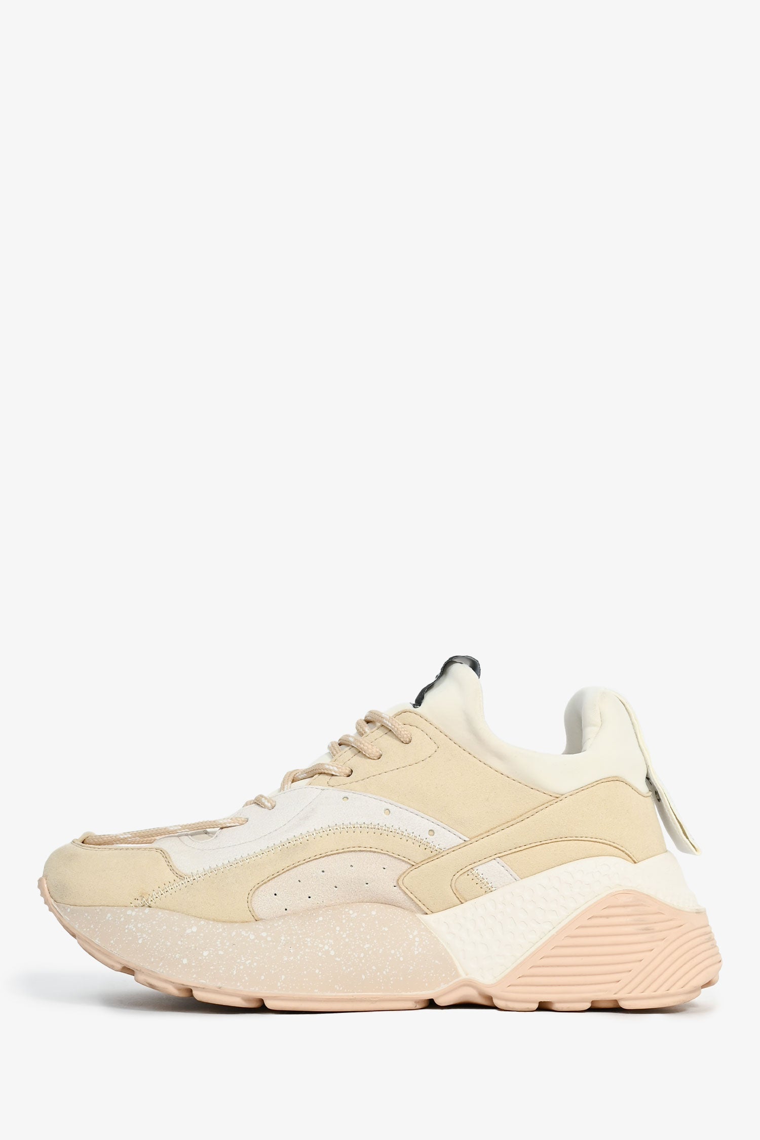 Stella McCartney Beige/Cream Chunky Sneakers. Front lace-up. Suede trimming. Tonal stitching. Rubber soles.