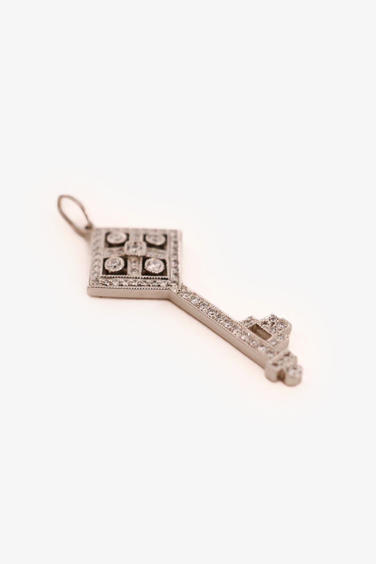Tiffany & Co. Platinum 0.36 ctw Diamond Checkerboard Key Pendant. Platinum hardware. Round brilliant diamonds.