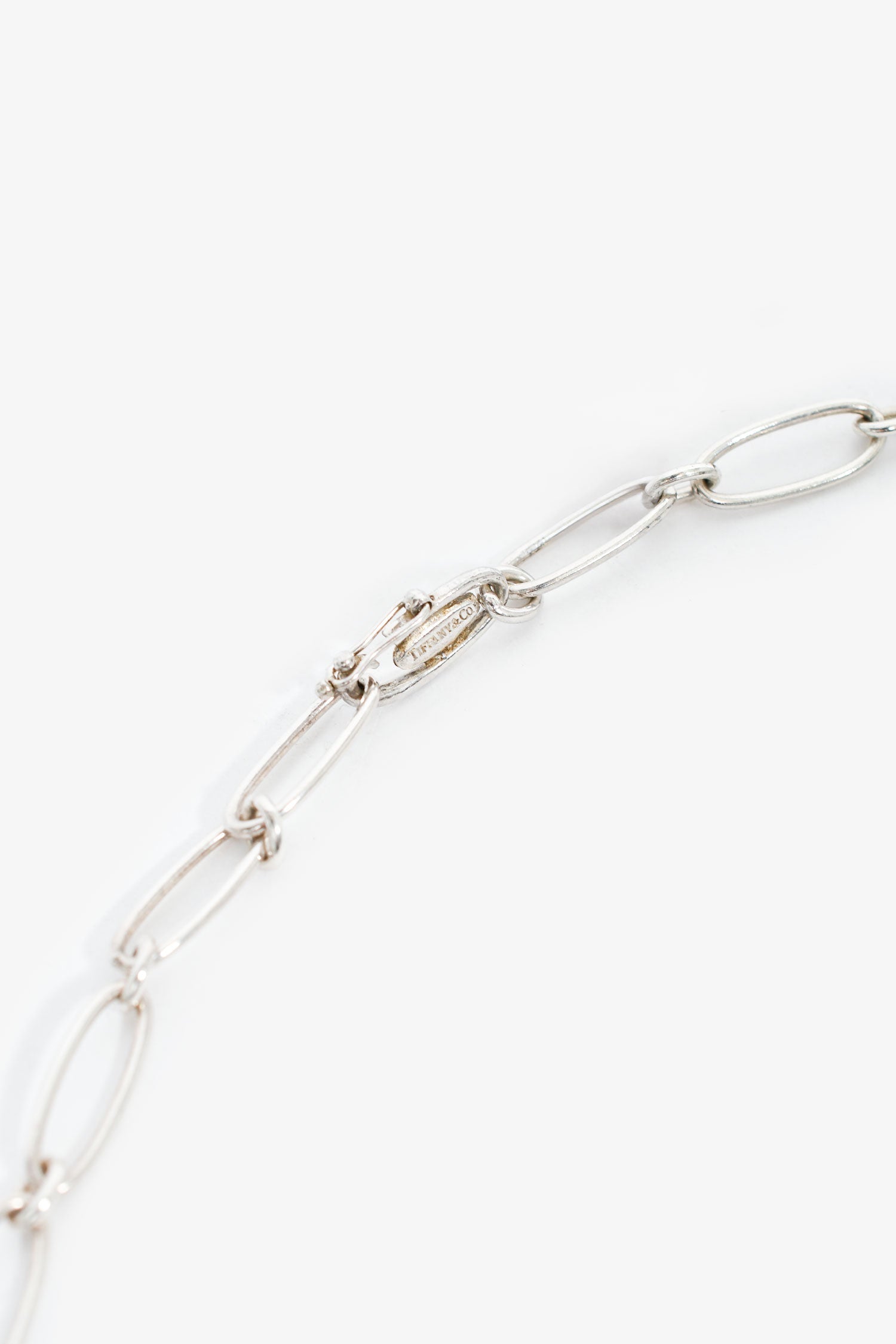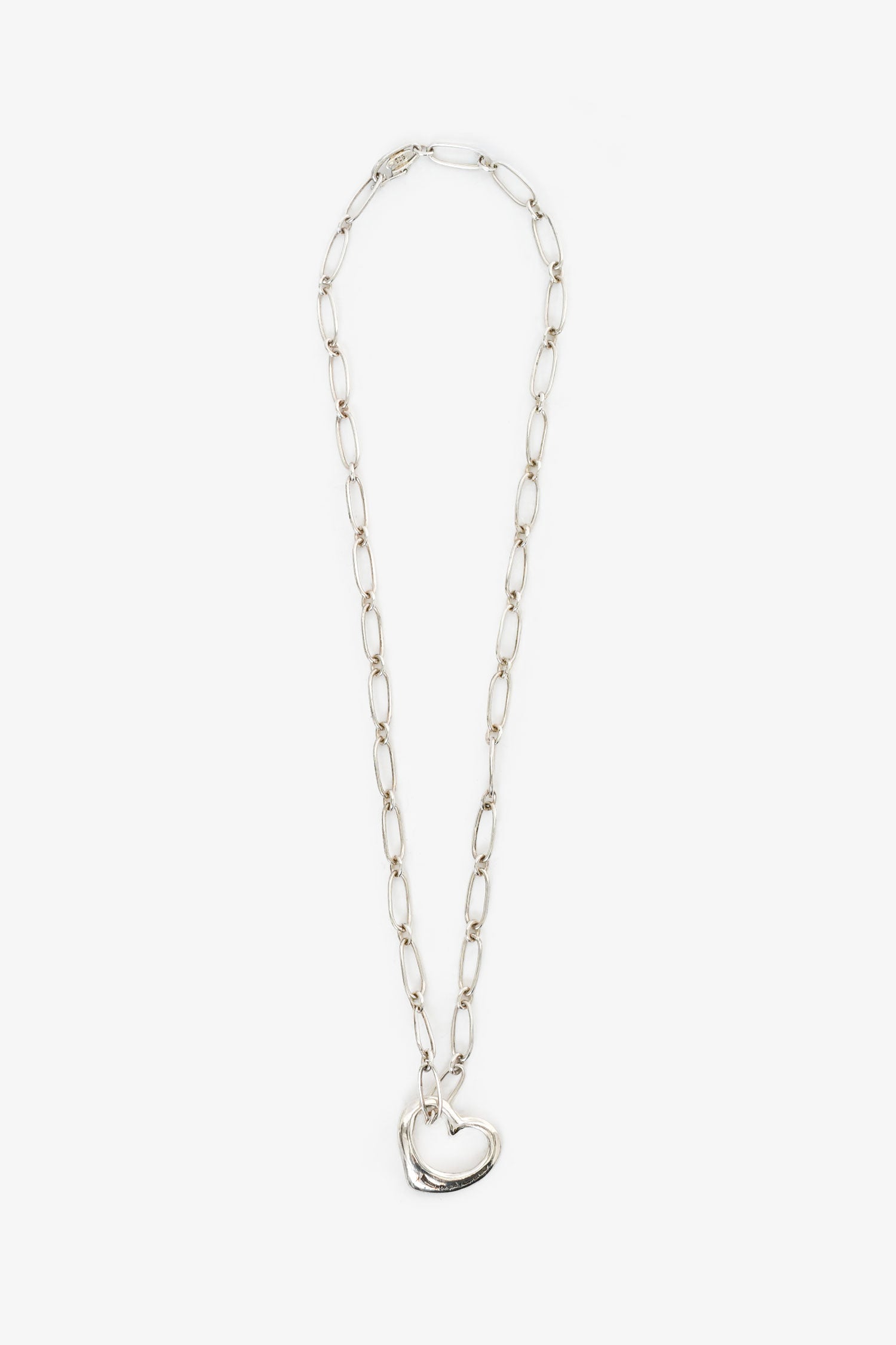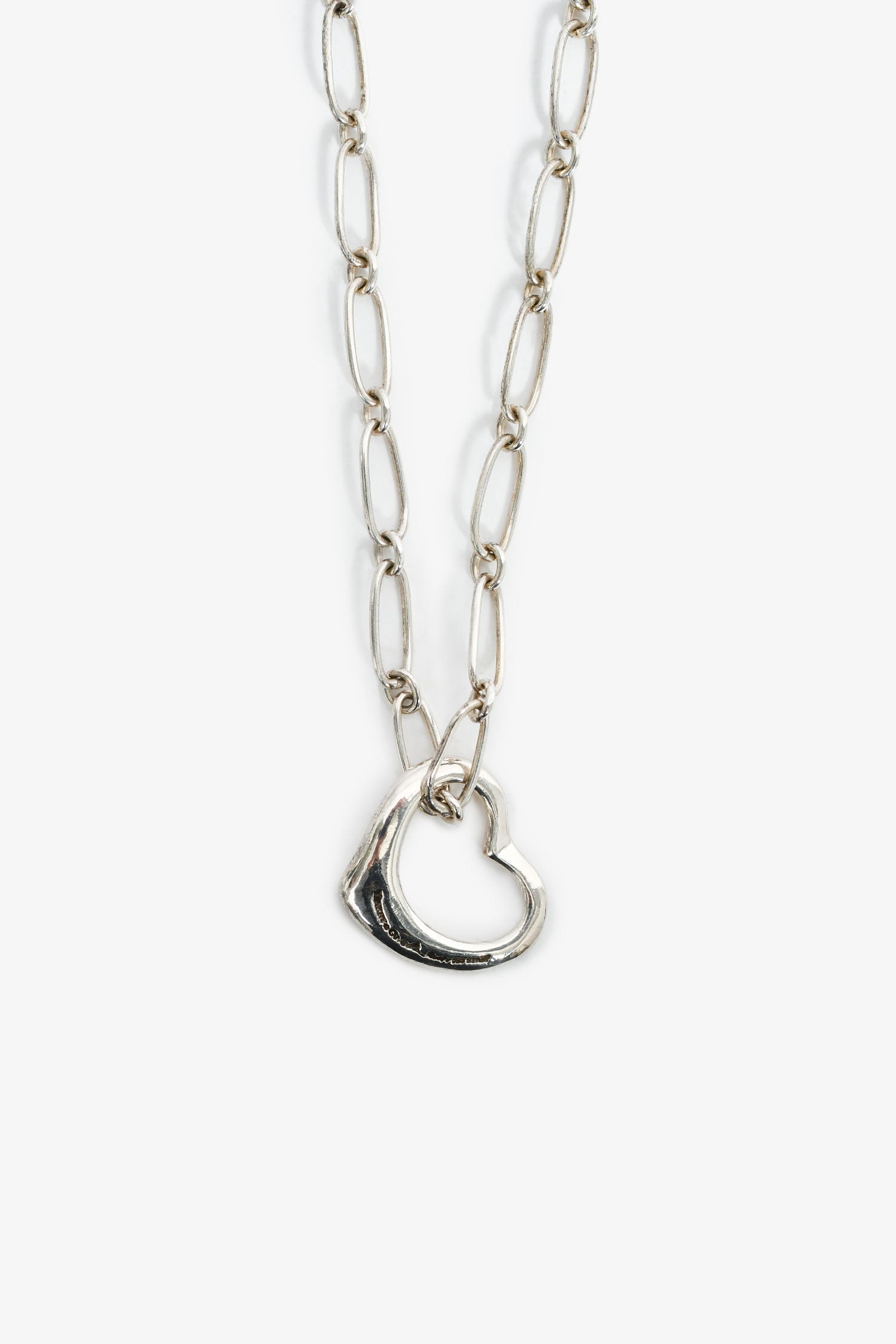 Tiffany & Co. Sterling Silver Elsa Peretti Chain Link Open Heart Necklace. Flip-lock closure. Sterling silver.